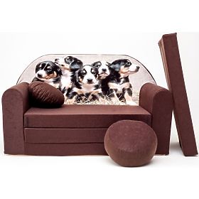 Braunes Kindersofa mit süßen Welpenmotiven, leicht und einfach zu bewegen. .. mehr