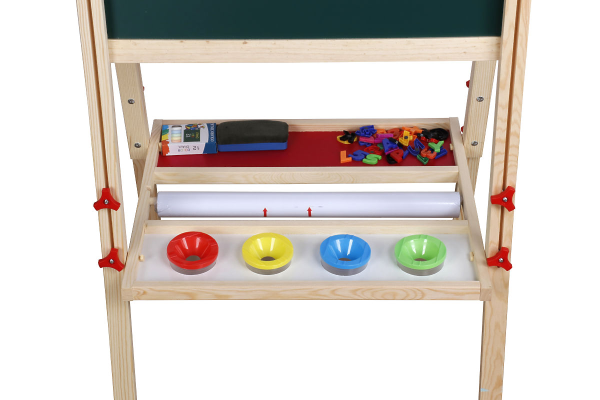 Entdecken Sie die kreative Welt voller Farben und Fantasie mit dieser vielseitigen Holztafel, die mit Ihrem Kind mitwächst. Diese Tafel bietet drei verschiedene Oberflächen: eine weiße Magnetfläche, eine Fläche zum Schreiben mit Kreide und eine Papierrolle zum Malen. Dank des höhenverstellbaren Ständers kann sie an die Bedürfnisse Ihres Kindes angepasst und langfristig genutzt werden.