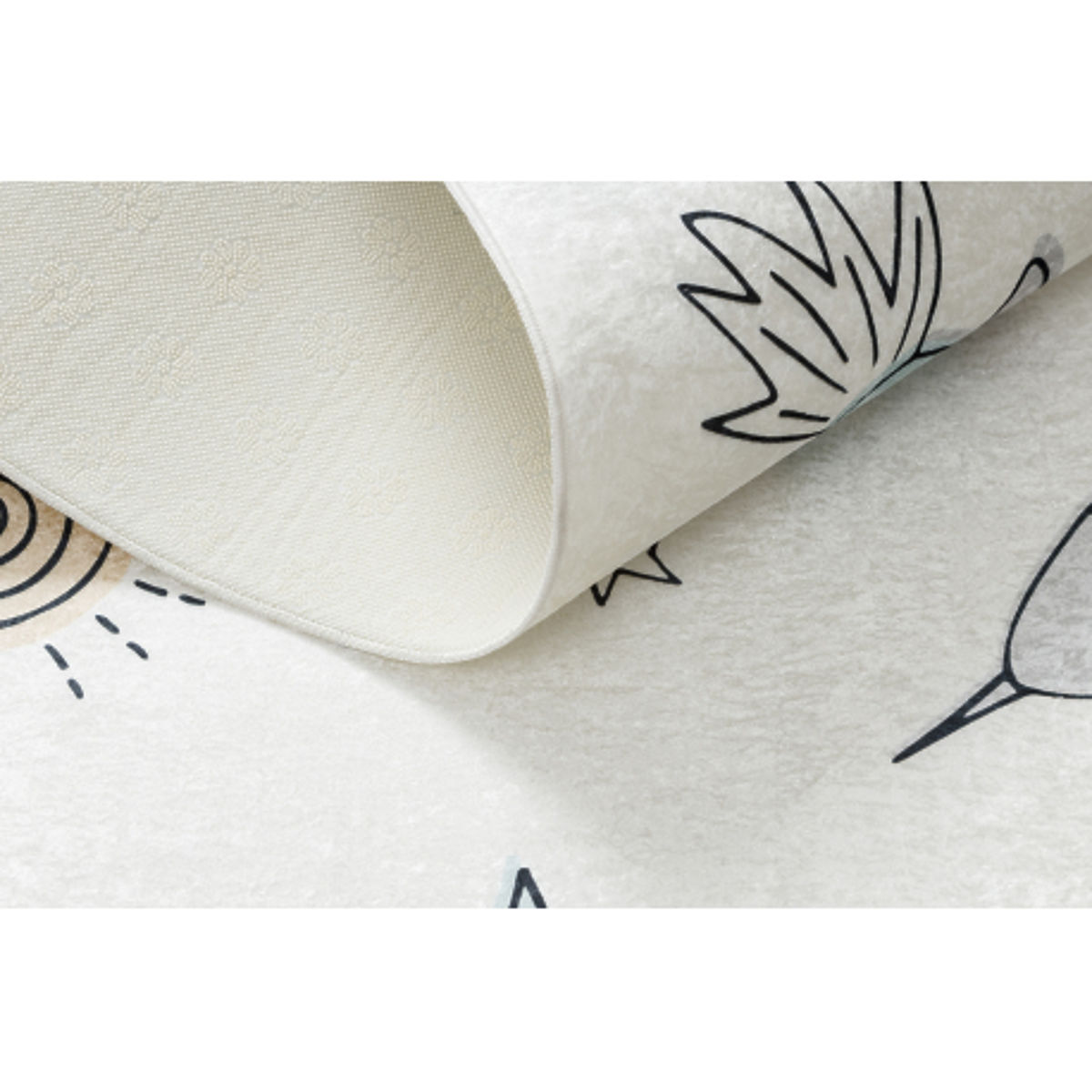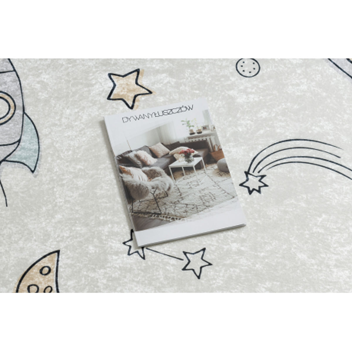 Begeben Sie sich mit den Kindern auf ein Weltraumabenteuer mit dem rechteckigen BAMBINO-Teppich mit Raketen- und Sternenmuster. Die cremefarbene Ausführung wirkt sanft und harmonisch und fügt sich perfekt in jedes Kinderzimmer ein. Das verspielte Design fördert die Fantasie und bringt Freude bei jedem Spiel. Der Teppich ist weich, angenehm zu berühren, sicher dank der rutschfesten Unterseite und sehr pflegeleicht – er kann in der Waschmaschine gewaschen werden. Eine perfekte Wahl für das Spielzimmer, Kinderzimmer und die Ruheecke.