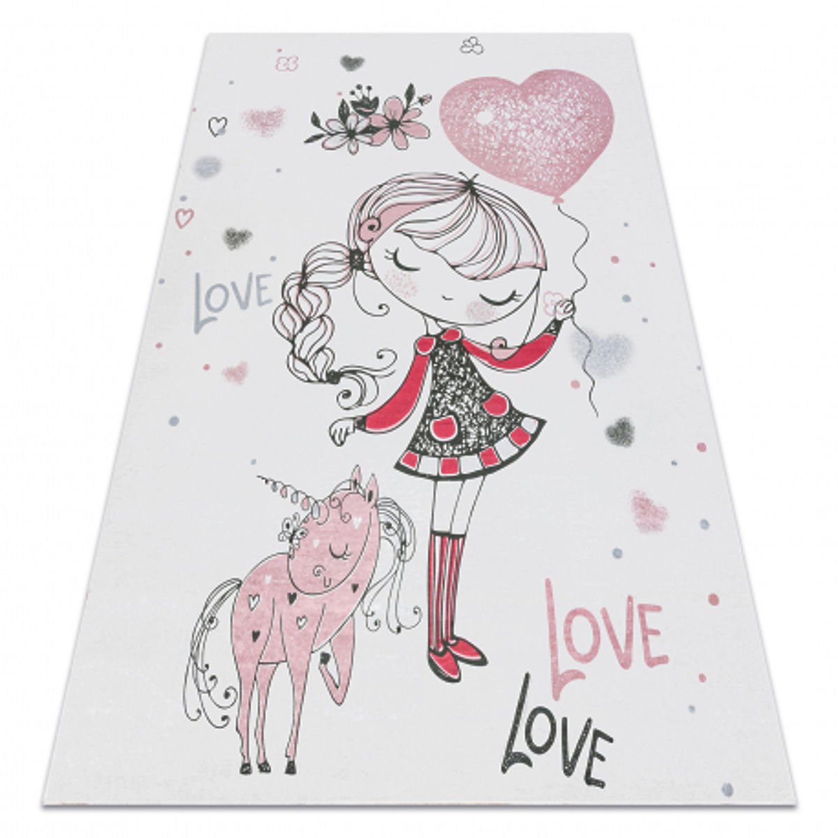 Banaby.at » Kindermöbel / Kinderteppiche / Kinderteppiche / BAMBINO 2644 Waschmatte Mädchen, Einhorn für Kinder rutschfest - weiß / rosa
