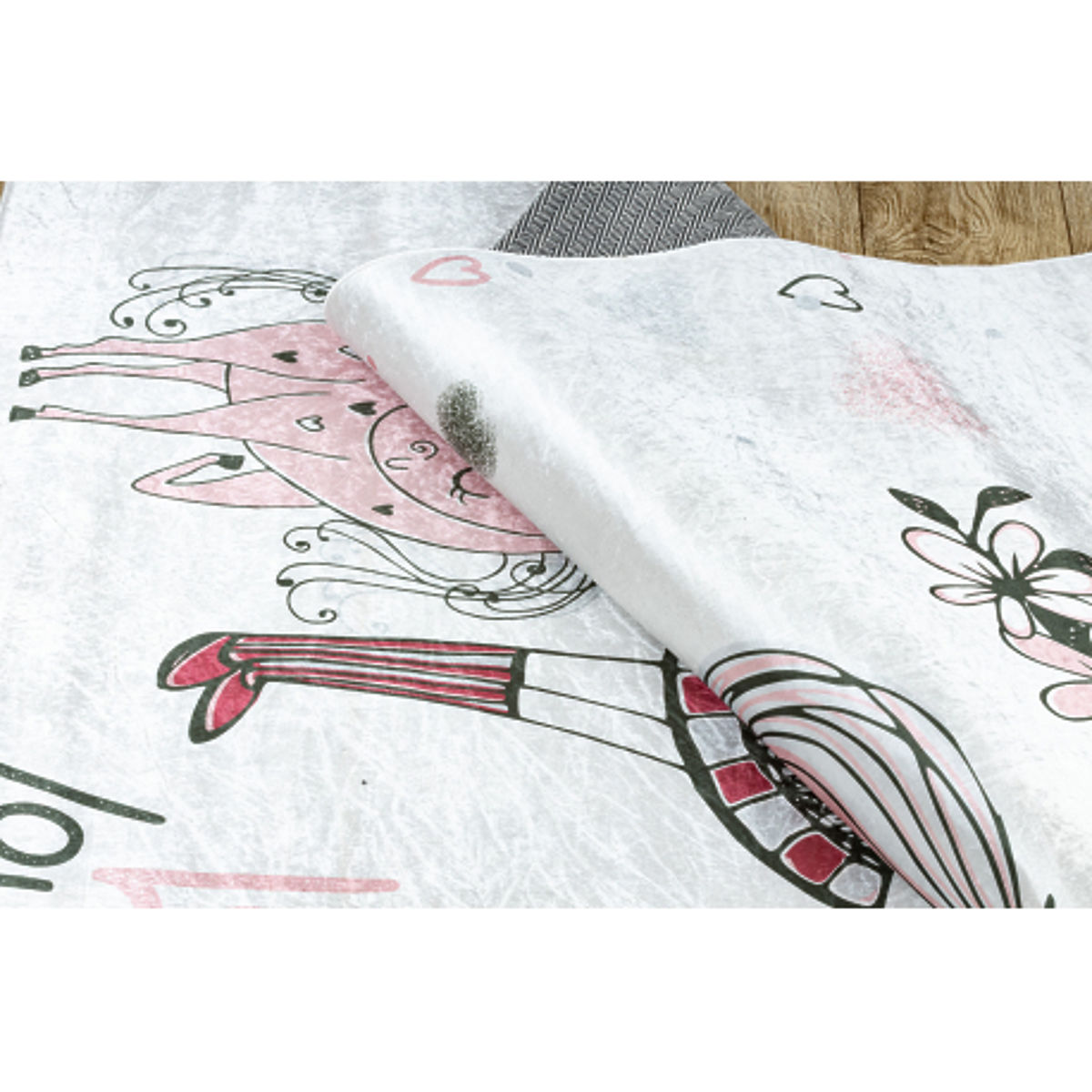 Schaffen Sie einen zauberhaften und sanften Spielbereich für Ihr Kind mit der Waschmatte BAMBINO 2644, die mit einem Motiv von einem Mädchen und einem niedlichen Einhorn begeistert. Die weiß-rosa Farbkombination wirkt zart, verspielt und ergänzt perfekt jedes Mädchenzimmer. Die Matte verleiht dem Interieur eine märchenhafte Atmosphäre und wird zu einem beliebten Ort zum Spielen, Zeichnen und Entspannen. Die Matte besteht aus 100% Polyester – einem Material, das besonders angenehm zu berühren, weich und gleichzeitig praktisch ist. Die Dicke von 5 mm bietet eine bequeme Schicht zum Sitzen und Spielen, während das geringe Gewicht von 0,70 kg/m² ein einfaches Tragen ermöglicht. Die Pflege der Matte ist sehr einfach, da sie in der Waschmaschine gewaschen werden kann. Die rutschfeste Unterseite sorgt für Stabilität auf dem Boden und Sicherheit bei jedem Schritt.