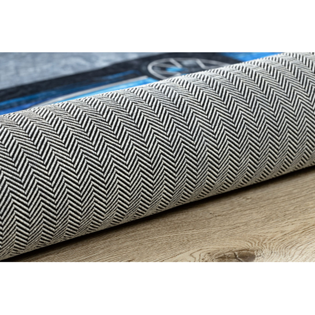 Schaffen Sie Ihrem Kind einen unterhaltsamen und sicheren Raum mit der rechteckigen Waschmatte BAMBINO 41730 mit Rennwagenmotiv. Die Kombination aus Grau und Blau bringt ein spielerisches und inspirierendes Element in das Kinderzimmer, ideal zum Spielen, Entspannen und für kreative Aktivitäten. Der Teppich besteht aus 100% Polyester, das angenehm zu berühren, langlebig und pflegeleicht ist. Mit einer Dicke von 5 mm und einem Gewicht von 0,70 kg/m² ist er leicht, bequem und stabil auf dem Boden. Ein praktischer Vorteil ist die Maschinenwaschbarkeit, die die Pflege erheblich erleichtert und den Teppich sauber und frisch hält. Die rutschfeste Beschichtung sorgt für Sicherheit beim Spielen und minimiert das Risiko des Ausrutschens.