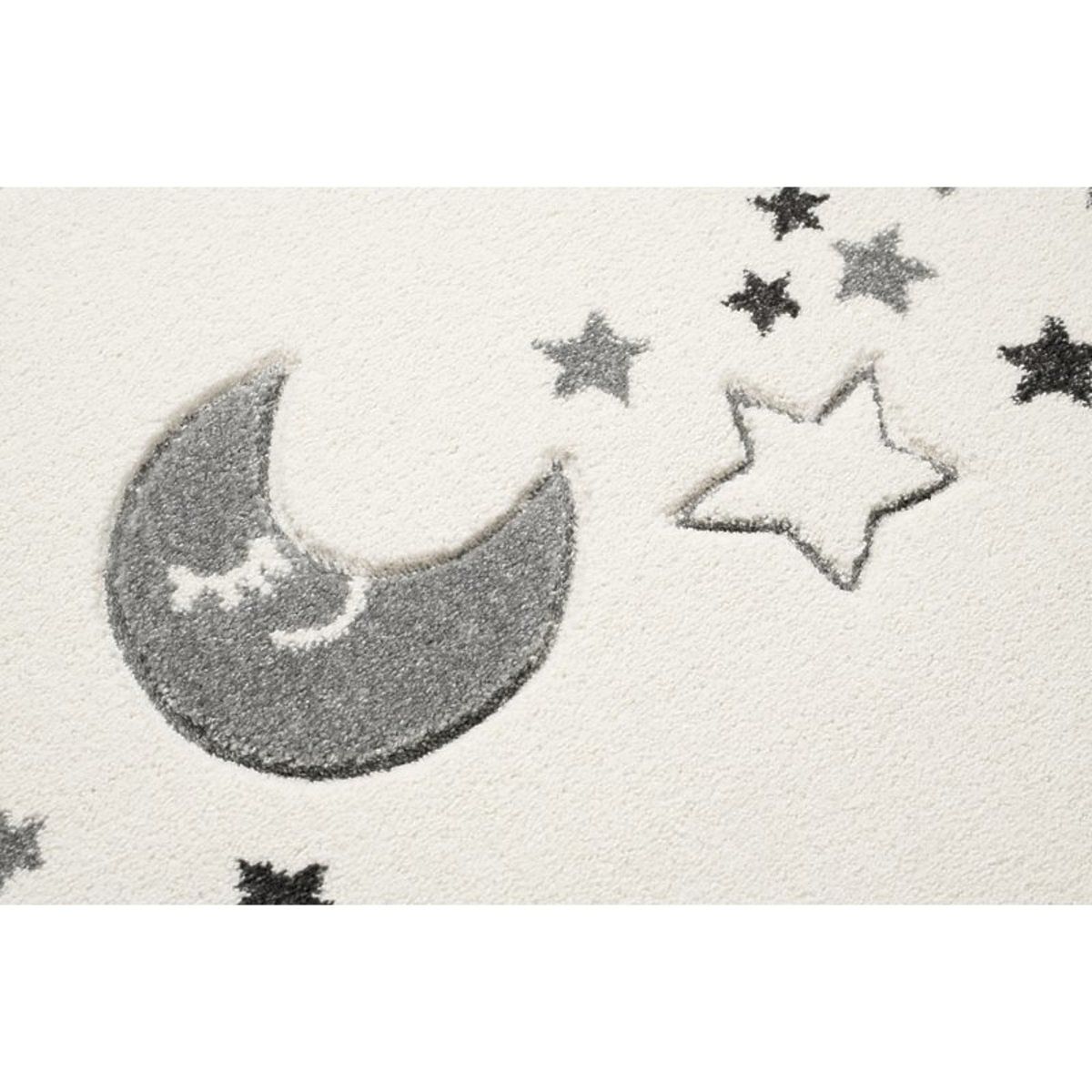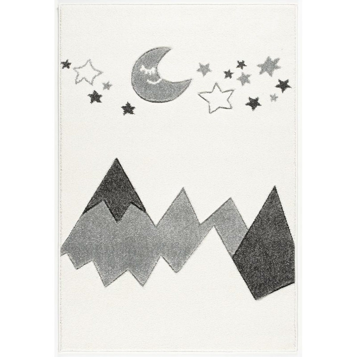Ein cremefarbener Luxusteppich mit einem Motiv aus Bergen, Mond und Sternchen in Grau aus LIVONE, Deutschland, wird sich in jedes Familienmitglied verlieben.