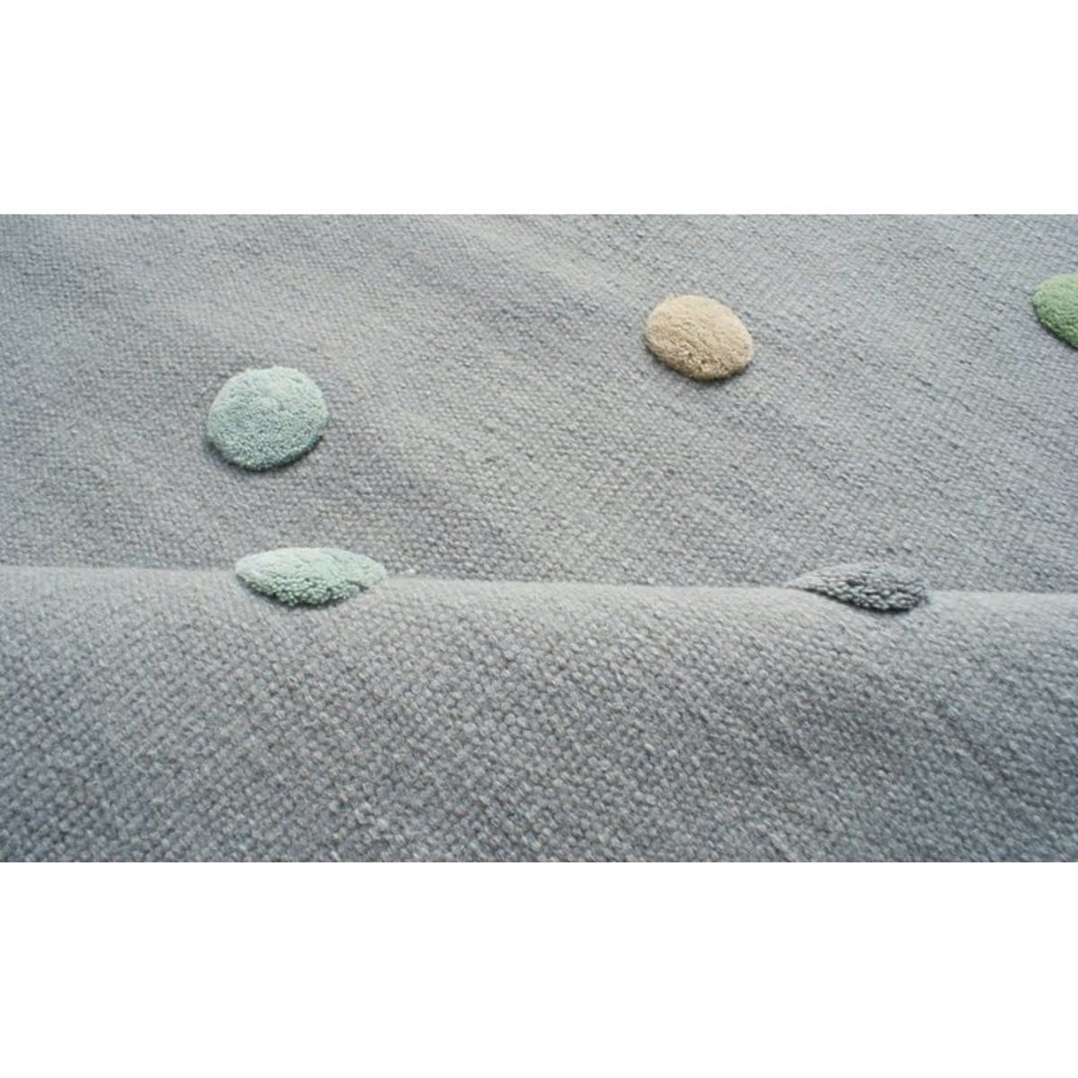 Ein grauer Luxusteppich mit bunten Punkten der deutschen Firma LIVONE wird sich in jedes Familienmitglied verlieben.