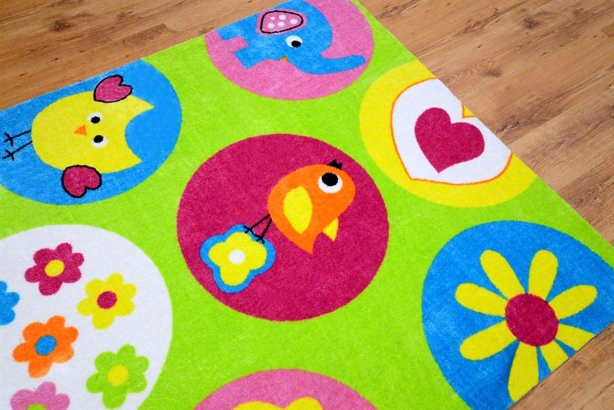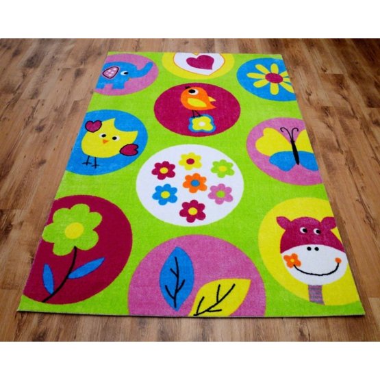 Schöne Kinder Teppich mit dem Motiv von lustigen Tieren und Blumen in bunten Kreisen verzaubern jeden kleines Kind! S Kinder Teppich ist geeignet für jeden möglichen Raum des Kindes in holčičího Reich in Zimmer der Jungen. Wunderschön beleuchtet, Make-up und hellt Zimmer des Kindes und jedes Kind fällt es sofort. Das Kinderteppich besteht aus einem Polyacryl-Substrat hergestellt ist aus Jute. - Größe: 1 cm
