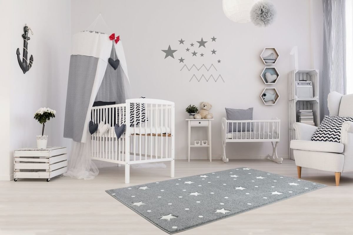 Der Teppich in der tollen silbergrauen Farbe ist mit vielen weißen Sternen geschmückt. Die Kinder werden ihn lieben! Der luxuriöse Teppich der deutschen Firma LIVONE ist eine ausgezeichnete Wahl für jedes Kinderzimmer.