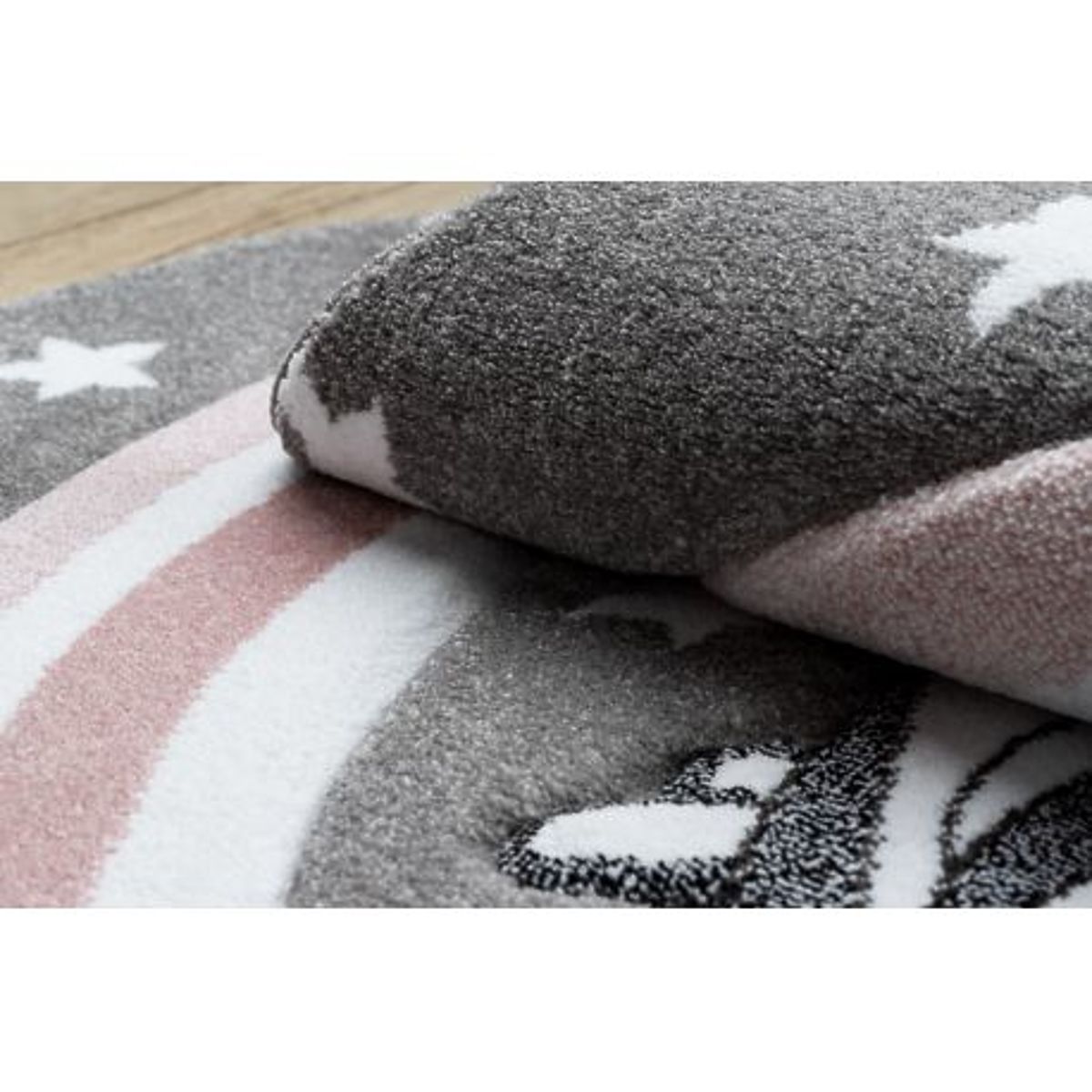 Schaffen Sie eine märchenhafte und spielerische Atmosphäre im Kinderzimmer mit dem runden Teppich PETIT PONY, auf dem ein niedliches Pony prangt. Der sanft graue Hintergrund verleiht dem Raum Ruhe und Neutralität, während das Pony-Motiv die kindliche Fantasie und den Spaß fördert. Die runde Form wirkt harmonisch und ergänzt wunderschön die Spielecke, die Leseecke oder den Bereich am Bett. Der Teppich ist aus hochwertigem Frisé-Garn gefertigt, das weich, langlebig und pflegeleicht ist. Er bietet eine bequeme und sichere Oberfläche zum Spielen, Sitzen und Ausruhen. Dank des universellen Designs passt er in die Zimmer kleiner Tierliebhaber und Märchenfreunde.