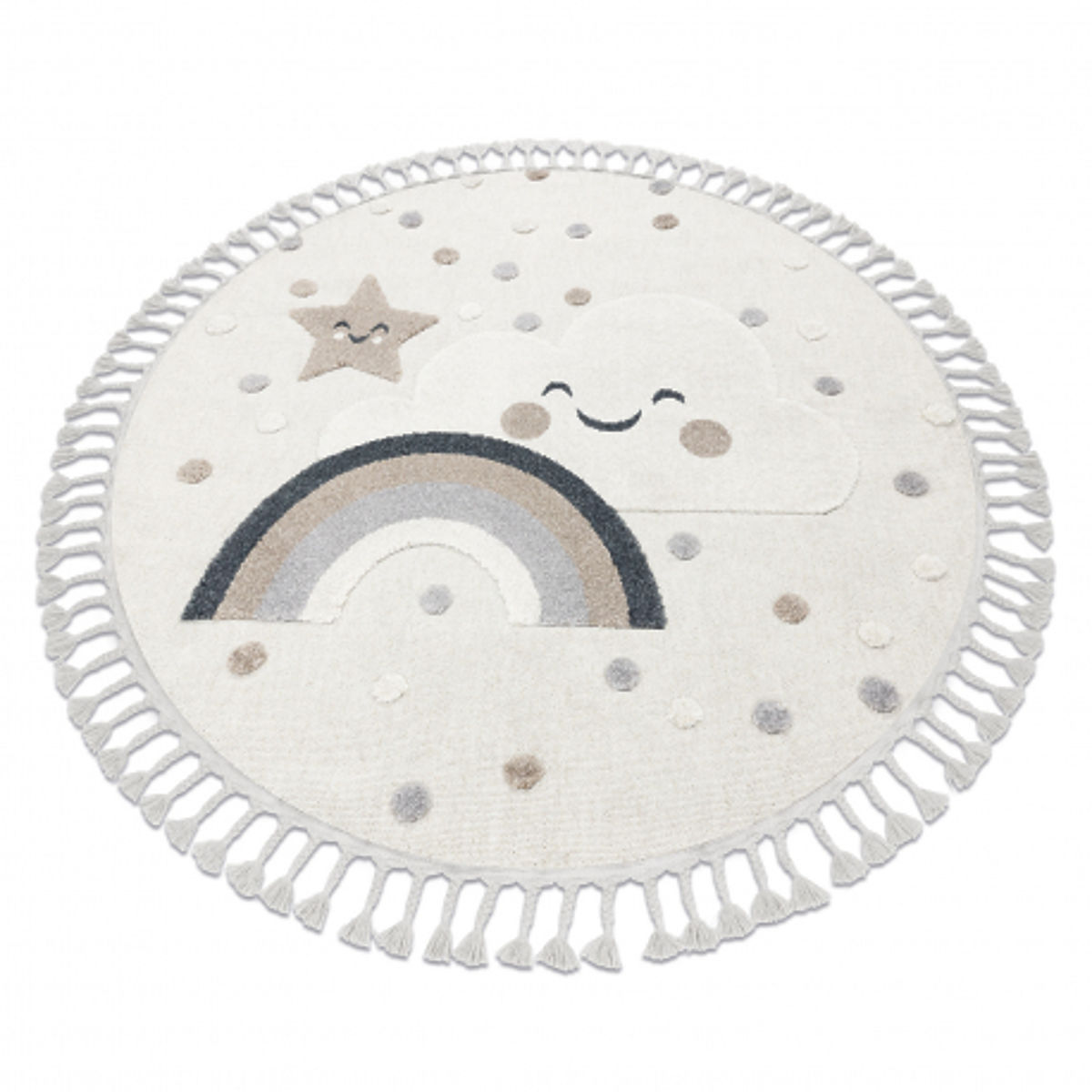 Banaby.at » Kindermöbel / Kinderteppiche / Kinderteppiche / Runder Teppich YOYO EY78 weiß / beige - Wolke, Regenbogen, Punkte für Kinder, strukturell, sensorisc