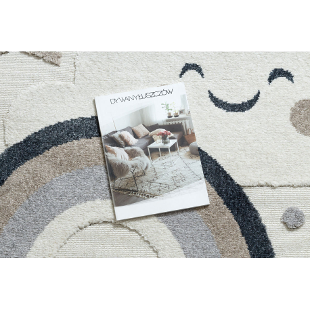 Der runde Teppich YOYO EY78 Wolke, Regenbogen und Punkte ist eine großartige Ergänzung für Kinderzimmer, die Verspieltheit und sensorische Stimulation kombiniert. Der weiße Hintergrund mit beigen Details schafft ein sanftes, beruhigendes und modernes Aussehen, das für verschiedene Innenräume geeignet ist.