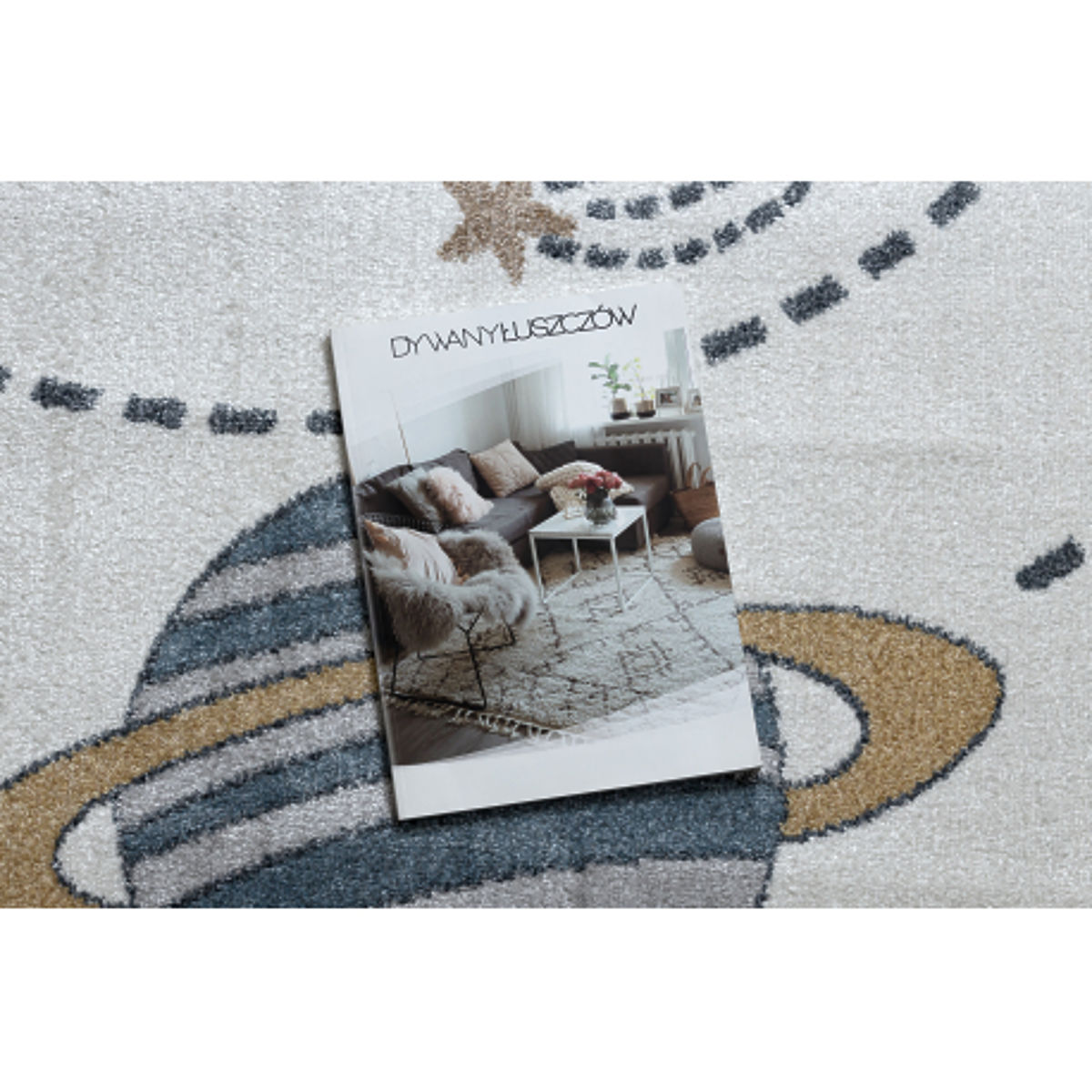 Der rechteckige Teppich BONO 8288 Raum und Planeten bringt eine kosmische Atmosphäre voller Fantasie und Entdeckung in das Kinderzimmer. Der cremefarbene Hintergrund in Kombination mit anthrazitfarbenen Details schafft ein modernes und visuell ansprechendes Erscheinungsbild, das sich leicht in verschiedene Innenräume einfügt.