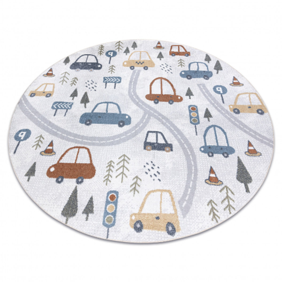 Banaby.at » Kindermöbel / Kinderteppiche / Kinderteppiche / Teppich BONO 8436 Rund Autos, Straßen creme / hellgrau