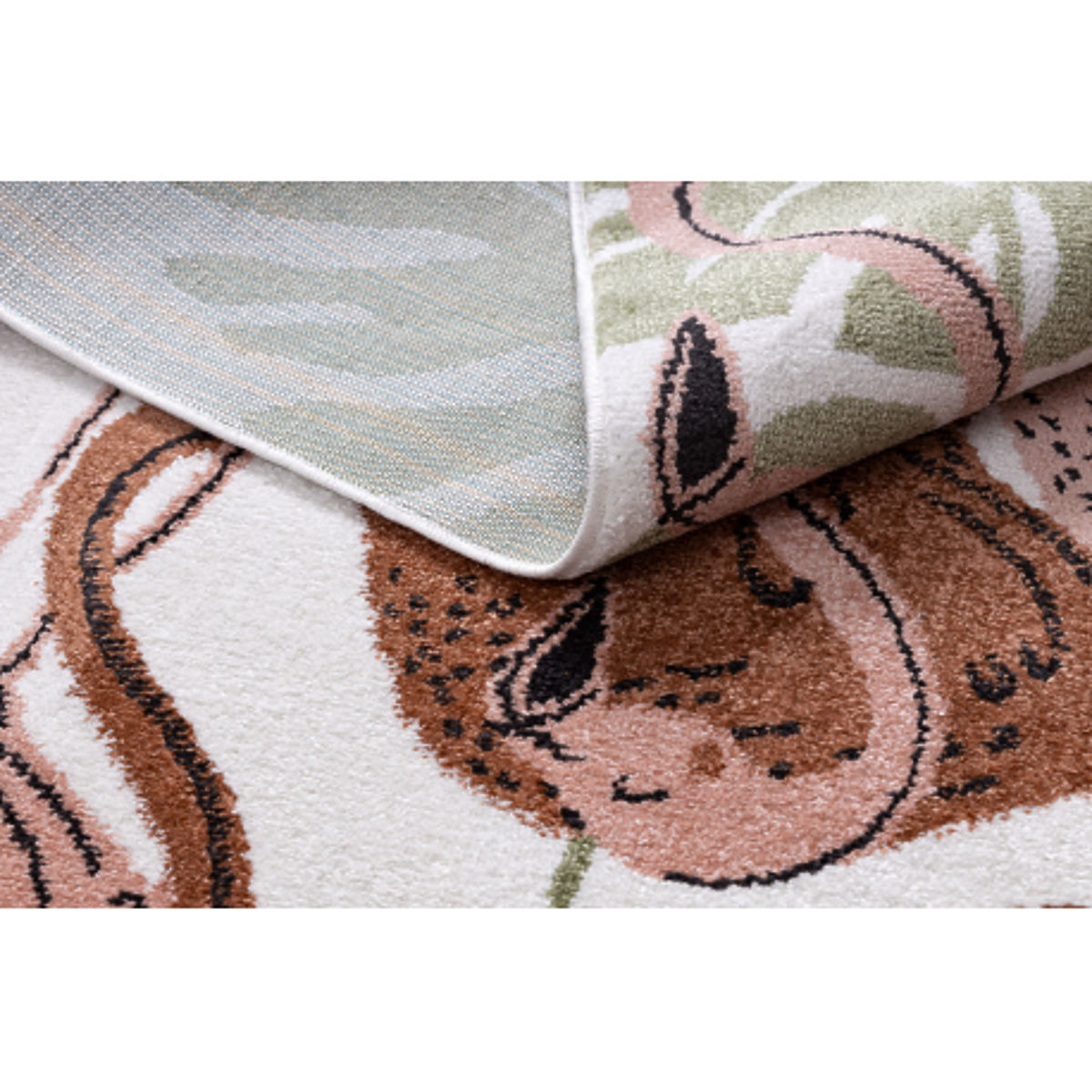 Bringen Sie Freude und eine sanfte tropische Atmosphäre in das Kinderzimmer mit dem Teppich FUN Flami, der von verspielten Flamingos geschmückt wird. Die cremefarbene Farbe wirkt beruhigend und lässt sich leicht mit anderen Einrichtungsgegenständen kombinieren. Der Teppich ist angenehm zu berühren, eignet sich für das tägliche Spielen und hält dank des robusten Materials auch in einer aktiven Kinderumgebung hervorragend stand. Eine ideale Wahl für das Kinderzimmer, Spielzimmer oder den Kindergarten.