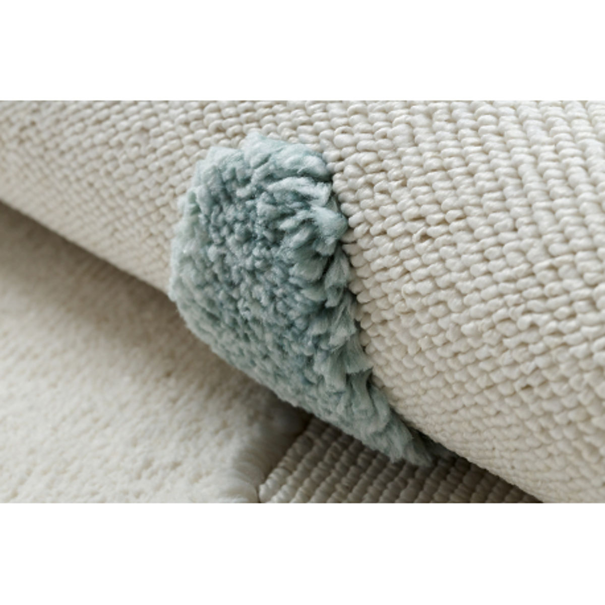 Der Teppich hat eine strukturierte Oberfläche mit Fransen, die den taktilen und visuellen Sinn anregen und die Kreativität und Neugier der Kinder fördern. Dank der hochwertigen Polyesterfaser ist der Teppich weich, leicht und pflegeleicht. Die Dicke des Teppichs liegt zwischen 8 mm und 16 mm, was Komfort beim Spielen und Ausruhen bietet. Das Gewicht hängt vom Muster des Teppichs ab und liegt zwischen 2,0–2,50 kg/m².