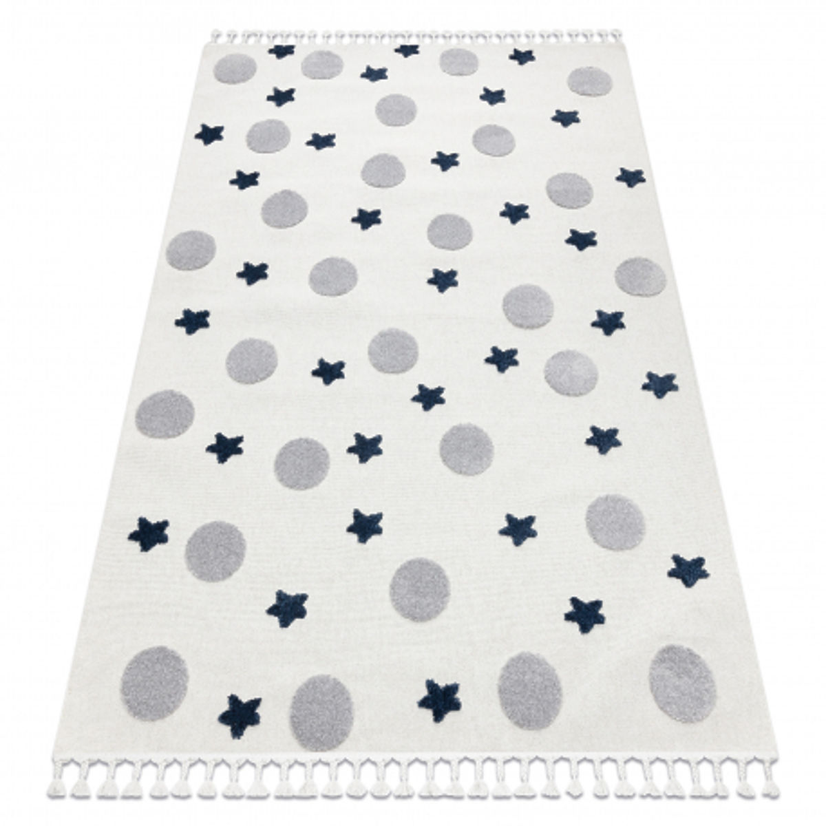 Banaby.at » Kindermöbel / Kinderteppiche / Kinderteppiche / Teppich YOYO GD75 weiß / grau - Sterne, Kreise für Kinder, strukturell, sensorisch Fransen