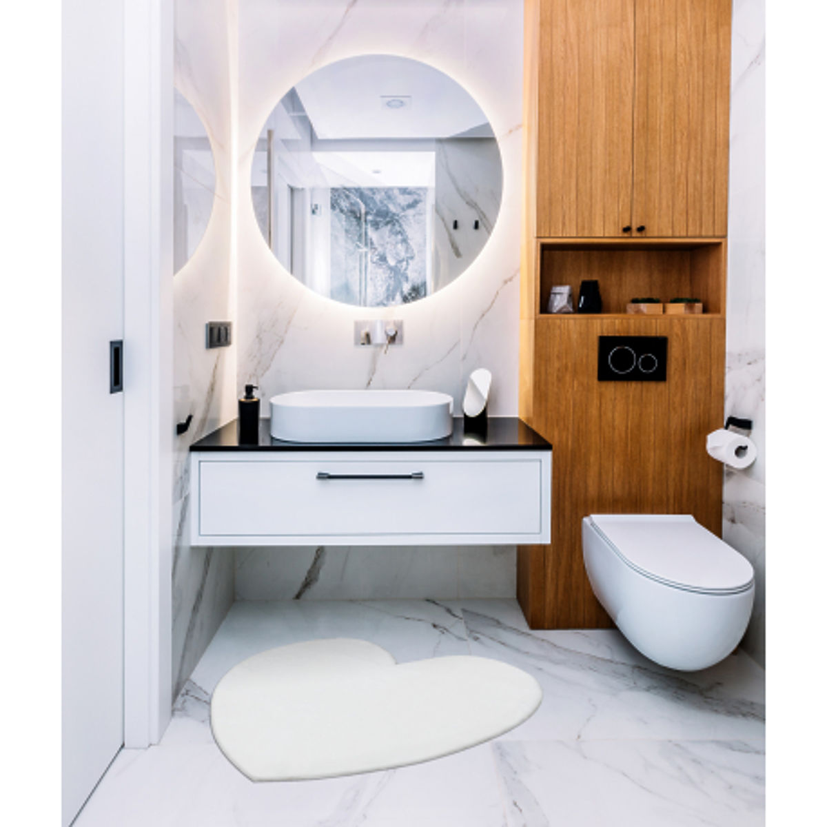 Plüschiger Herz-Teppich in Elfenbein, maschinenwaschbar und rutschfest. .. mehr