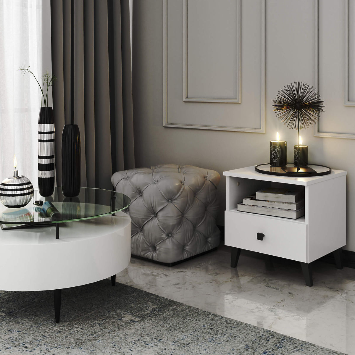 Viele Menschen schätzen Nachttische. Es handelt sich um eine Art Möbelstück, das neben dem Bett platziert wird. Auf seiner Platte kann eine Lampe und das aktuell gelesene Buch platziert werden, während im Inneren Gegenstände aufbewahrt werden können, die das Ausruhen und Einschlafen erleichtern. Ein interessantes Angebot ist der weiße Nachttisch MOBI K01. Er zeichnet sich durch Funktionalität aus und präsentiert sich gleichzeitig wunderschön im Schlafzimmer.