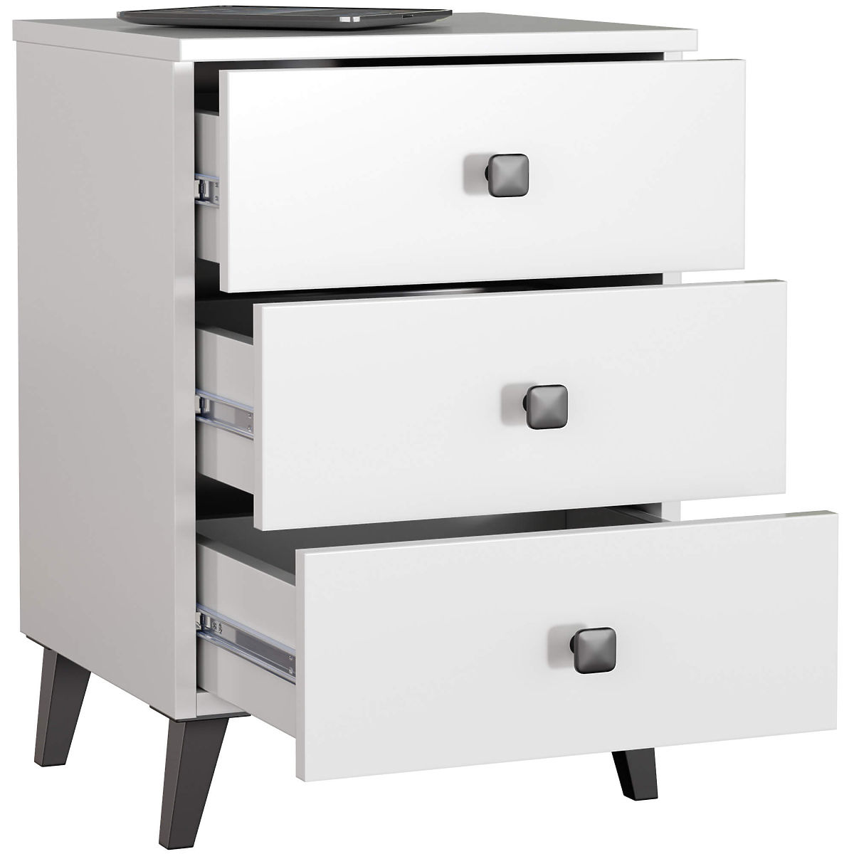 Nachttisch MOBI K03 mit 3 Schubladen in Weiß und Schwarz. .. mehr