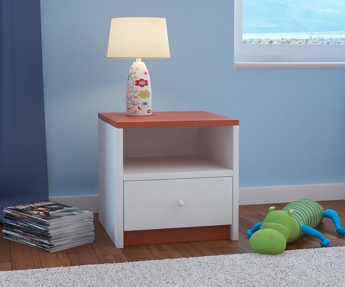 Das schöne Nachtschränkchen für Kinder mit Calvados-Dekor eignet sich für alle Kinderzimmer. Es wurde aus hochwertiger Laminat-Platte hergestellt. Das Schränkchen pass perfekt zu dem Bett Ourbaby, und beim Kauf beider Produkte bekommen Sie ein schönes einheitliches Design. Der Nachttisch hat ein Regal und eine Schublade.