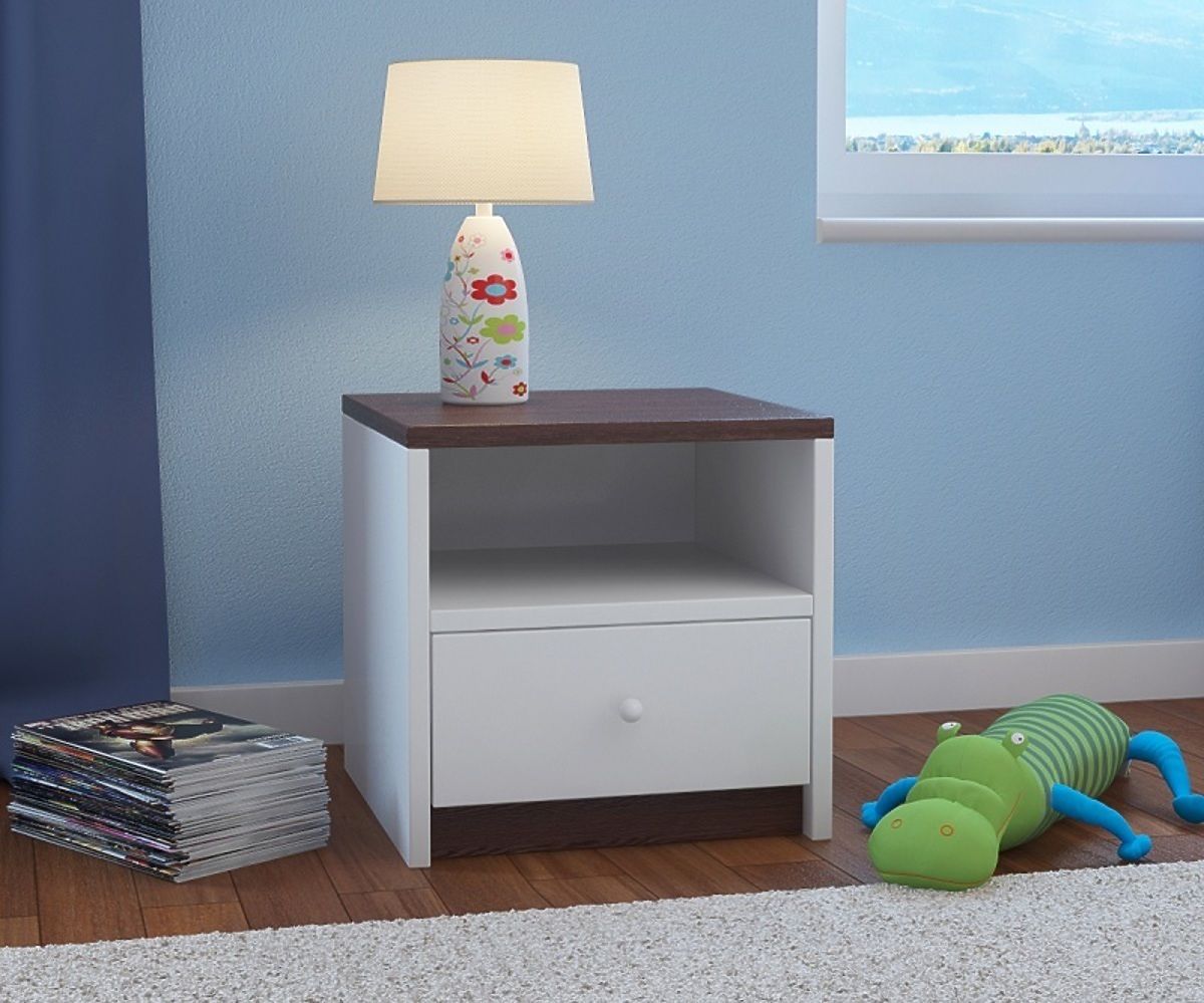 Das schöne Nachtschränkchen für Kinder mit Wenige-Dekor eignet sich für alle Kinderzimmer. Es wurde aus hochwertiger Laminat-Platte hergestellt. Das Schränkchen pass perfekt zu dem Bett Ourbaby, und beim Kauf beider Produkte bekommen Sie ein schönes einheitliches Design. Der Nachttisch hat ein Regal und eine Schublade.
