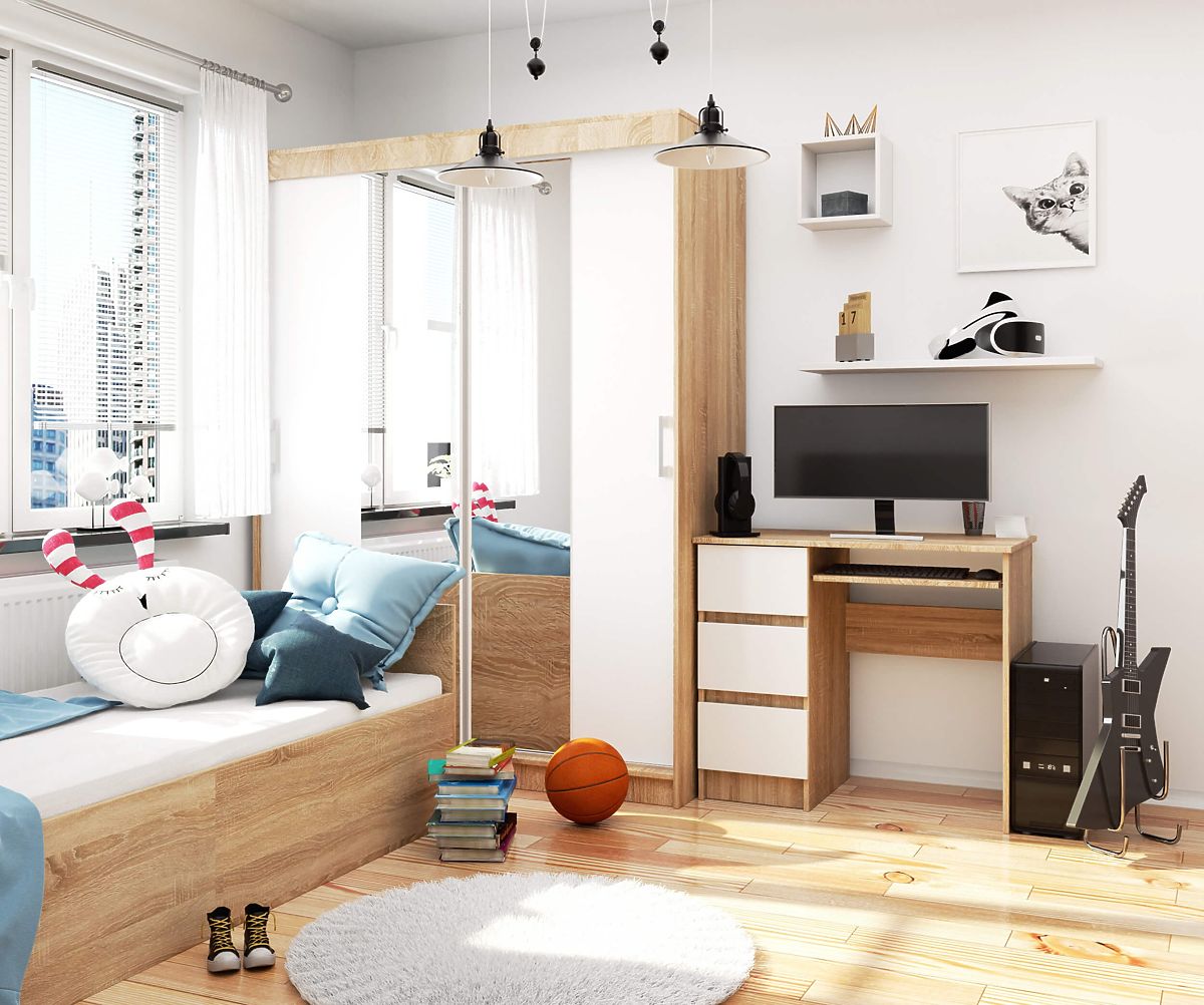Der kleine und elegante Computertisch A-6 in Eiche Sonoma ist die perfekte Wahl für Jugendliche und Liebhaber moderner Innenräume. Er wirkt elegant und entspricht den aktuellen Trends. Das Möbelstück passt sich praktisch jedem, auch dem kleinsten Raum an und ist gleichzeitig effizient bei der Arbeit. Die Tischplatte mit den Maßen 90 cm x 50 cm bietet ausreichend Platz für Schulmaterialien, Lehrbücher und einen Laptop oder Computer.