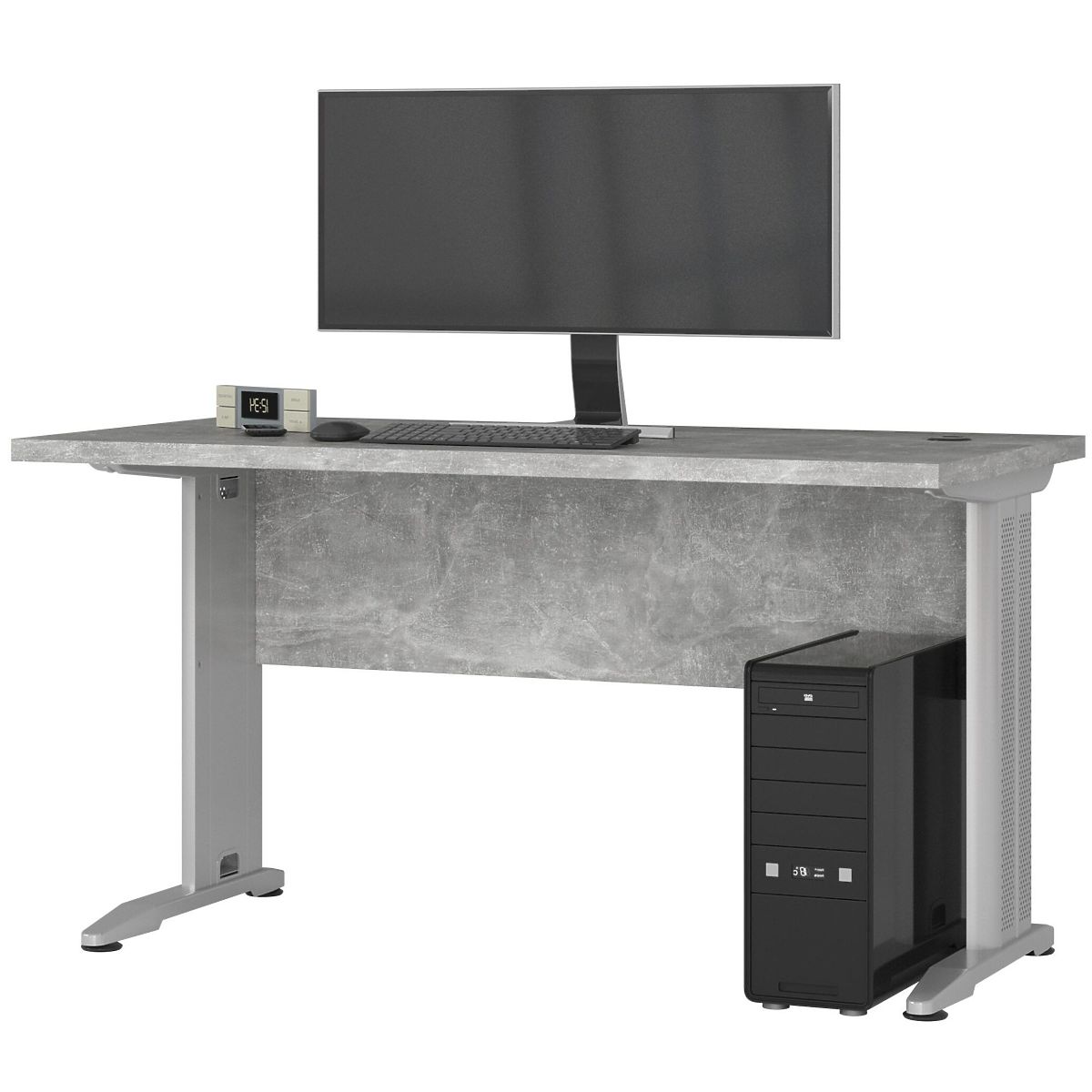 Freistehender Computertisch mit Betonoptik und Metallbeinen. .. mehr