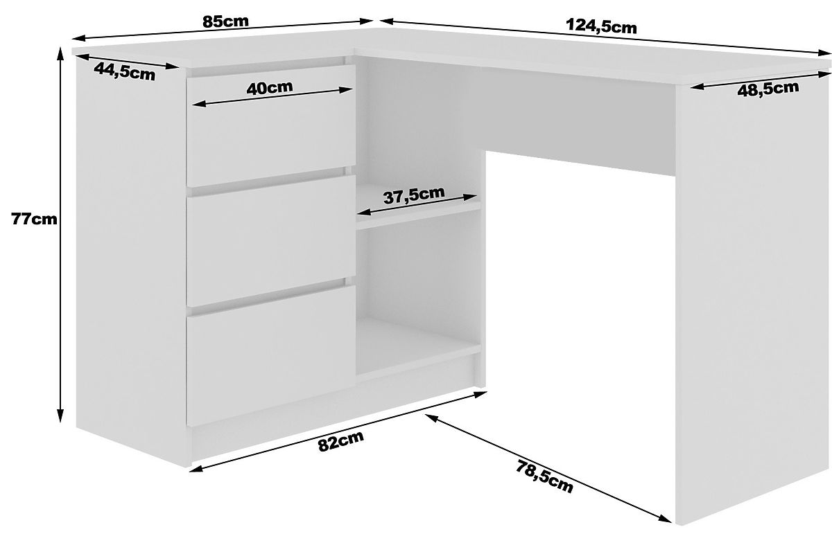 Banaby.at   »   Kindermöbel   /   Kindertische   /   Kinderschreibtische   /   ECKSCHREIBTISCH B16 124 cm LINKS 3 SCHUBLADEN PK WEIß / SONOMA