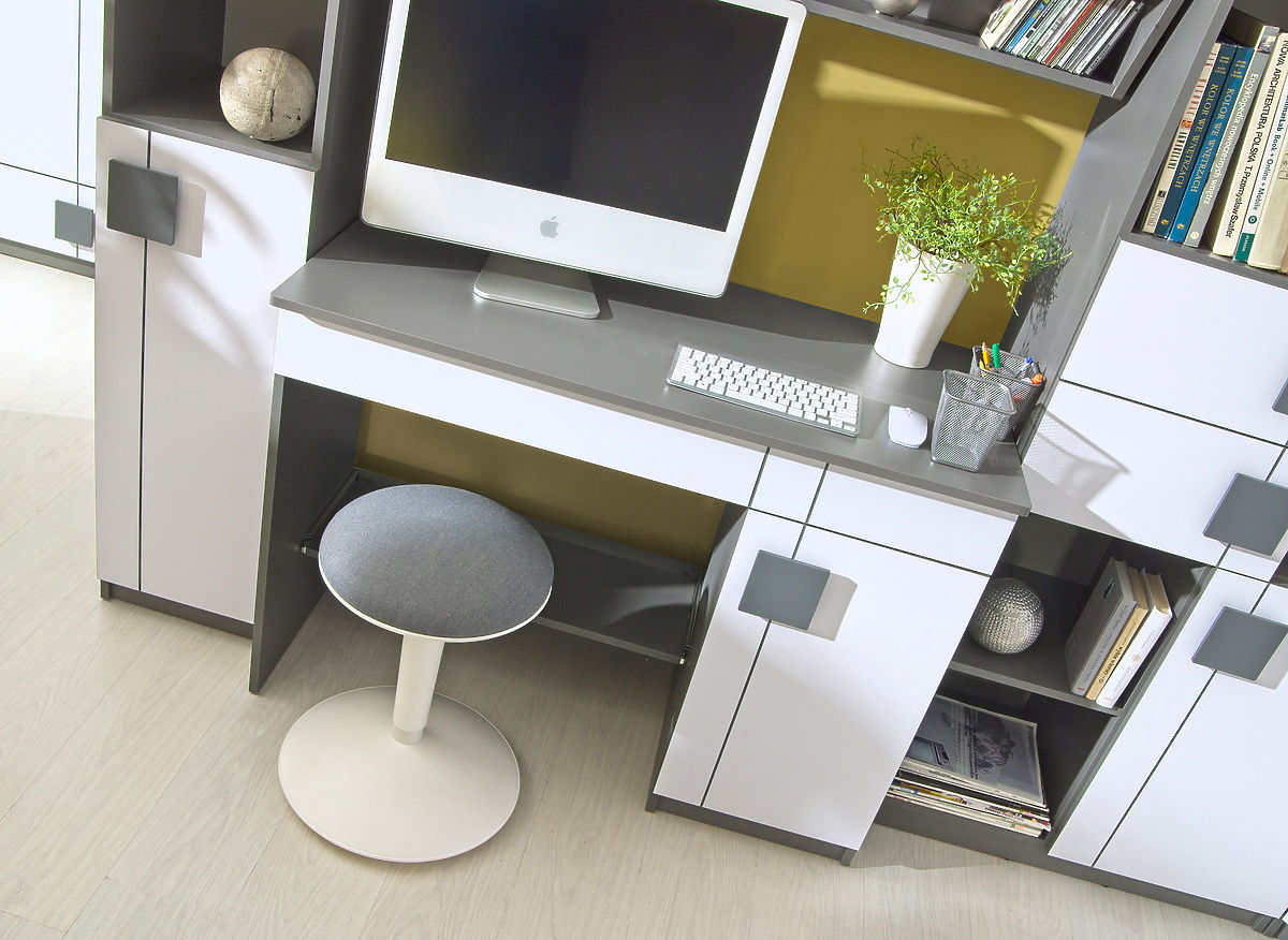 Der praktische Schreibtisch GUMI ist ein stilvoller Schreibtisch für die ersten Hausaufgaben und passt perfekt in jedes Kinderziemmer! Der Schreibtisch ist aus Laminat hergestellt. Die Farbkombination aus Weiß und Anthrazit/grau sieht sehr modern aus. Unter der Tischplatte befindet sich eine längliche Schublade.