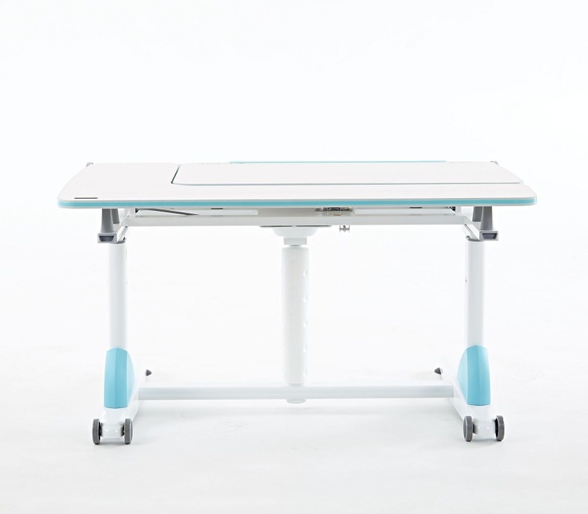 Der Tisch hat eine einstellbare Neigung der Schreibplatte und der Tischhöhe. Die Schreibplatte kann im Bereich von 0 bis 60 Grad geneigt werden. So wird die Halswirbelsäule entlastet und eine Bildung des krümmen Rückens verhindert.