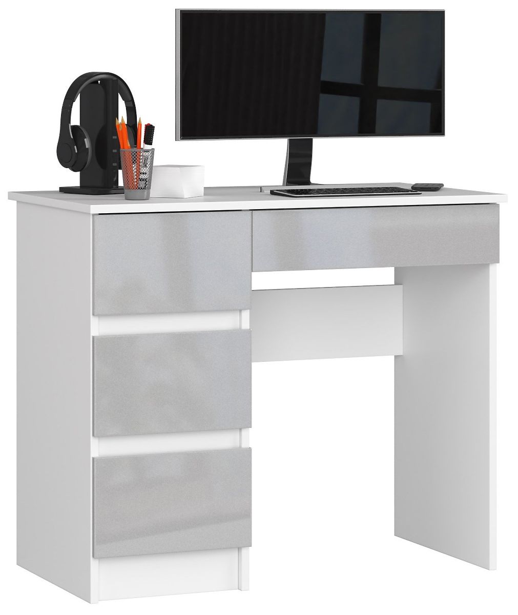 Ein richtig gewählter Schreibtisch ist der Schlüssel zu effektivem und komfortablem Lernen und Arbeiten. Für diese Aufgaben eignet sich der Computertisch A-7 hervorragend! 3 geräumige Schubladen mit einer Tiefe von 38,5 cm auf der linken Seite eignen sich hervorragend als Stauraum für Notizen oder Schreibutensilien, während die vierte Schublade unter der Tischplatte ideal für weiteres Zubehör ist. Die Farbkombination aus Weiß und Metallic ermöglicht es, dass der Computertisch sowohl im Büro als auch in einem farbenfrohen Kinder- oder Jugendzimmer platziert werden kann, wo er eine dezente Ergänzung des Interieurs darstellt.