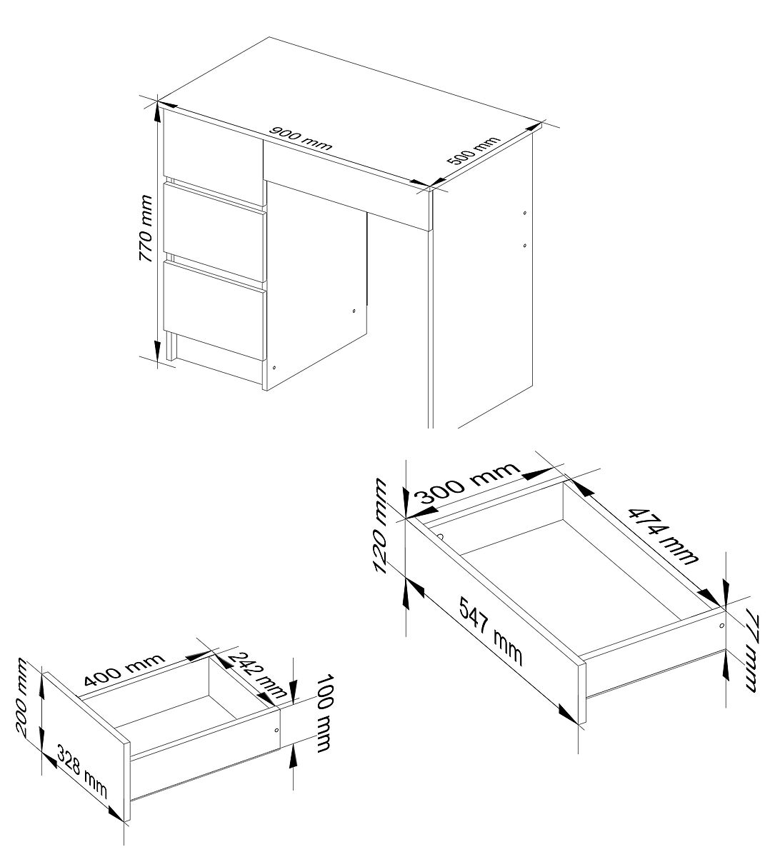 Der Tisch selbst ist relativ klein - er ist 90 cm breit und passt daher auch in wirklich kleine Räume. Es lohnt sich definitiv, auf die solide Verarbeitung, den attraktiven Preis und die Möglichkeit der Ratenzahlung zu achten. Wir empfehlen Ihnen herzlich, sich den Rest der Möbel anzusehen, die in Kombination ein erstaunliches Interieur schaffen und Sie oder Ihr Kind zum Lernen und Arbeiten inspirieren werden.