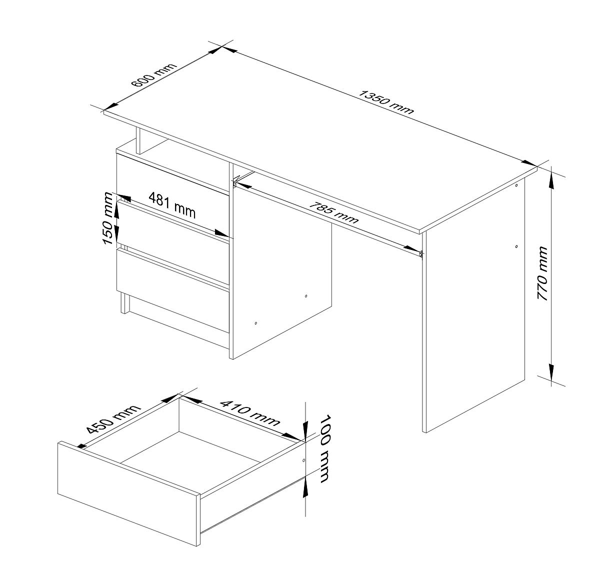 Schreibtisch aus 16mm abriebfestem laminiertem Plattenmaterial.