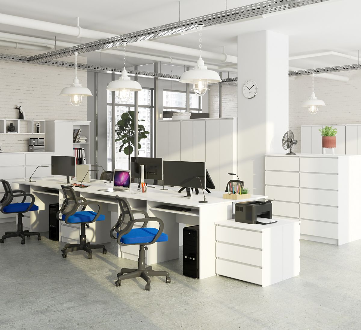 Der Tisch ist aus einer 16 Millimeter dicken laminierten Platte gefertigt. Zu diesem Möbelstück können Sie weitere Büroausstattungen wie Regale, Schränke, Regalböden, Kommoden anpassen. In unserem Angebot haben wir auch viele Bürostühle, die sicherlich perfekt zu dem weißen freistehenden Tisch passen. Wir empfehlen, das vorbereitete Angebot zu nutzen.