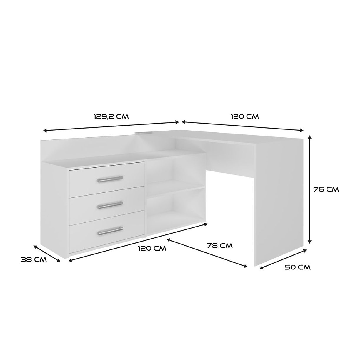 FUNKTIONALER ECKSCHREIBTISCH MIT 3 SCHUBLADEN