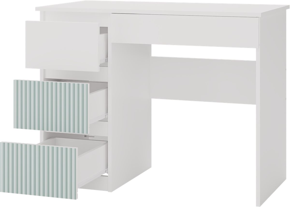 • 3 geräumige hohe Schubladen auf der linken Seite (davon 2 Schubladen mit mintfarbenen Mustern) und 1 flache Schublade auf der rechten Seite unter der Tischplatte