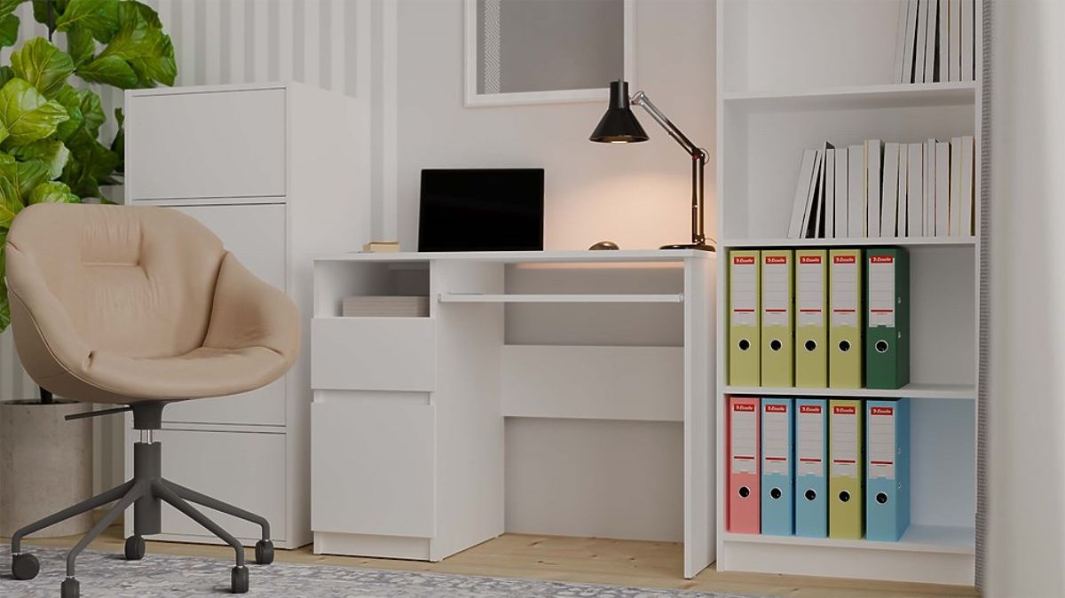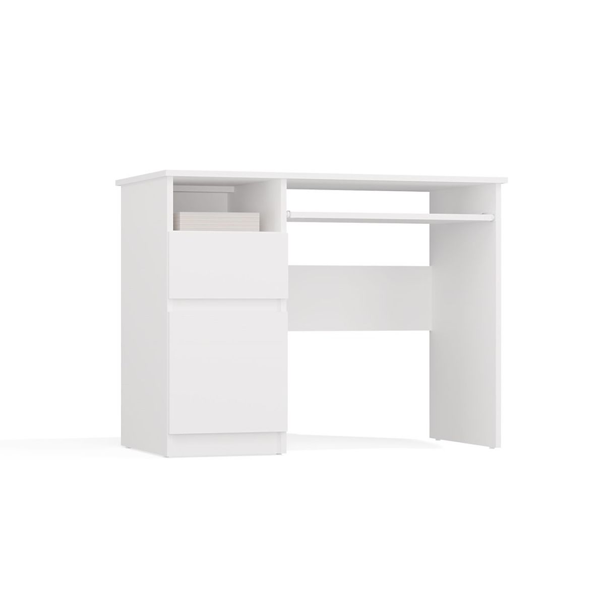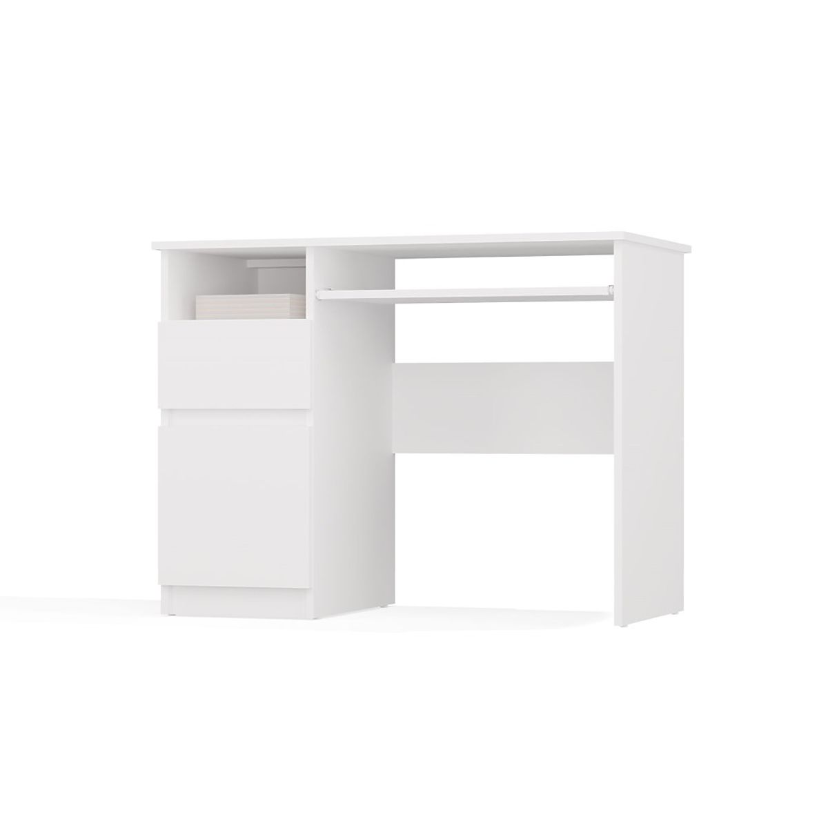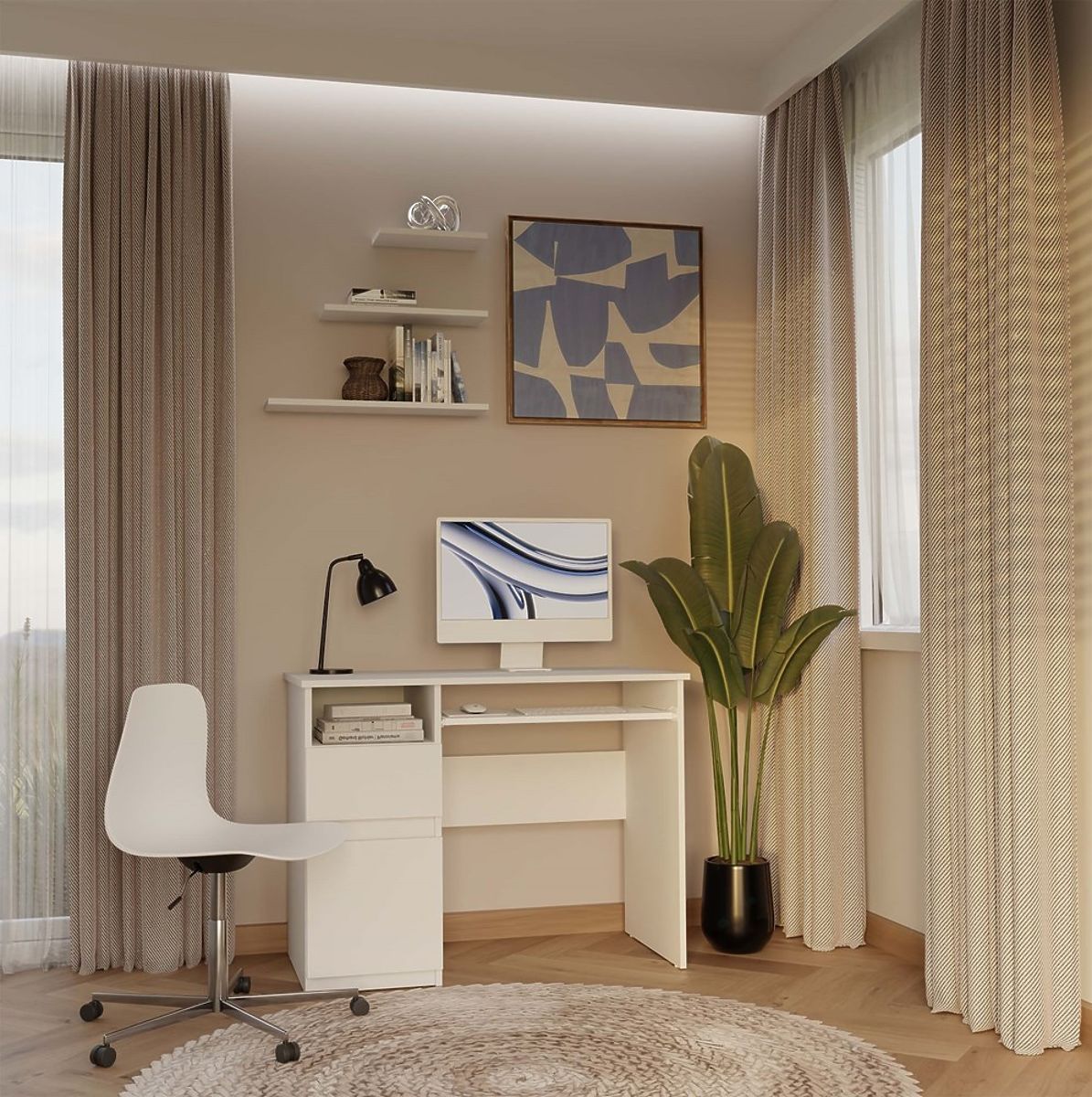 Schreibtisch mit Schublade und Tastaturauszug in Weiß. .. mehr