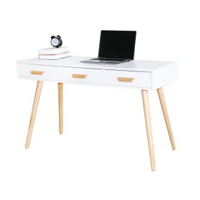 Der moderne, vielseitige Tisch Scandinavia (Holz und Weiß) wird in jedem Interieur attraktiv aussehen. Der große Vorteil ist, dass er als funktionaler Kosmetiktisch im Schlafzimmer, als moderner Arbeitstisch im Büro oder als Konsolentisch im Wohnzimmer verwendet werden kann.