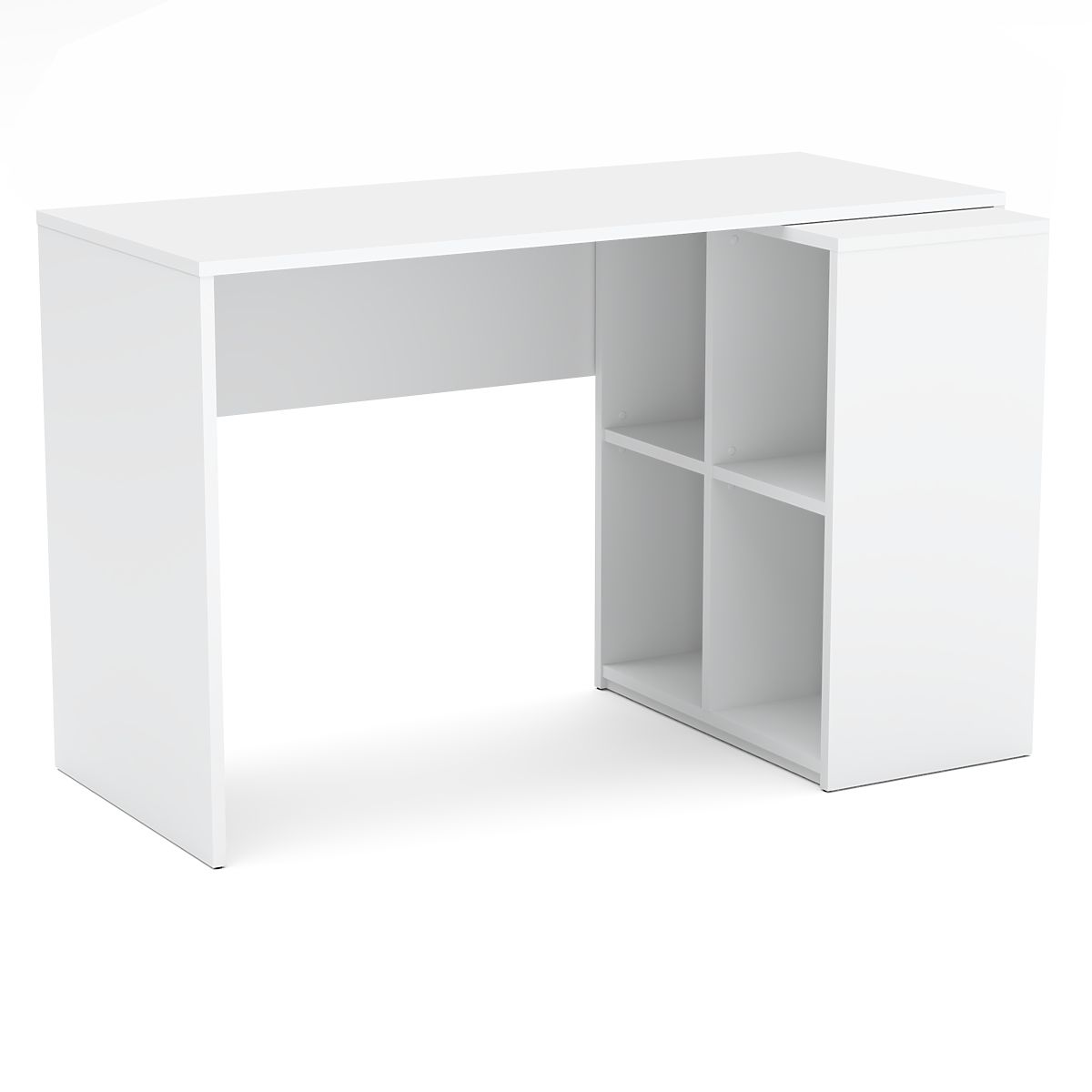 Der Tisch bietet zudem viel Stauraum dank vier offener Fächer. Ihre Büromaterialien sind somit immer griffbereit. Der Tisch kann dank des Regalteils sowohl als Eck- als auch als gerader Tisch aufgestellt werden.