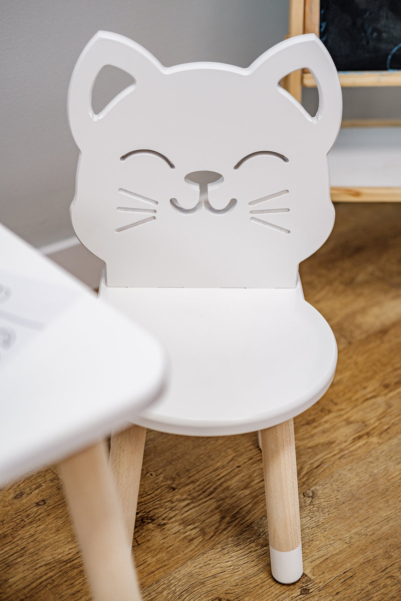 Ein wunderschöner Holzstuhl in Form einer Katze ist eine perfekte Ergänzung für jedes Kinderzimmer. Der Stuhl besteht aus hochwertigen, bruchsicheren Materialien. Für maximale Sicherheit sind die Kanten des Stuhls abgerundet.