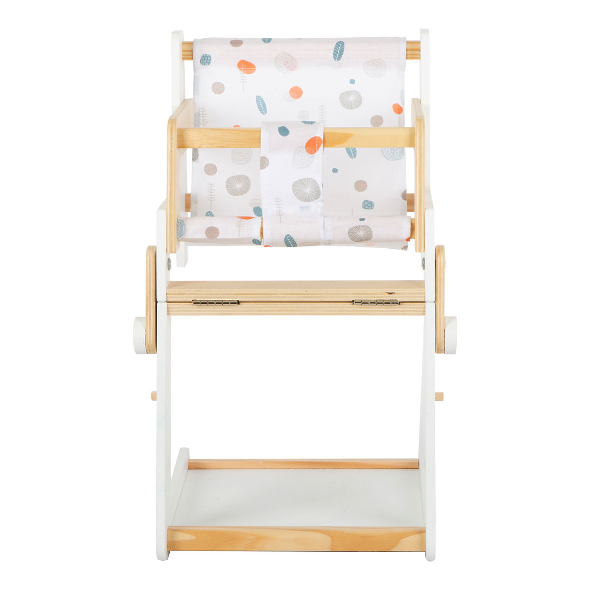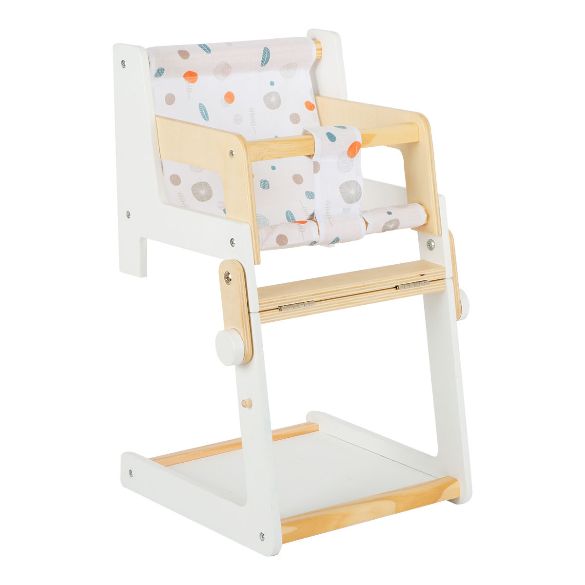 Multifunktionaler Hochstuhl für Puppen, der sowohl jüngere als auch ältere "Puppeneltern" begeistern wird. Er hat ein einfaches skandinavisches Design und ist aus hochwertigen Materialien gefertigt. Mit nur wenigen Handgriffen kann der Hochstuhl in einen Stuhl mit Tisch verwandelt werden. Geeignet für Puppen und Kuscheltiere bis ~46 cm. Dank des schlichten Designs passt er in jedes Interieur. Er ist sichtbar aus Holz gefertigt und hat abgerundete Kanten. Hauptmerkmale Skandinavisches DesignFür Puppen und Kuscheltiere bis 46 cmAbgerundete Kanten Little Button Die attraktive Zubehörreihe für Puppen Little Button bietet eine breite Palette von Produkten, vom Kinderwagen über den Hochstuhl bis hin zum Schrank. Kunden werden leicht durch das einheitliche funktionale und dezente Design mit klaren Linien und zurückhaltenden neutralen Farben angesprochen. Dadurch können sie zusammen harmonische Sets bilden, die moderne Innenräume geschmackvoll ergänzen. Die durchdachte Konstruktion und hochwertige Verarbeitung sorgen für hohe Stabilität, Sicherheit und Langlebigkeit. Schaffen Sie mit ihrer Hilfe eine stilvolle Puppenecke, in der Ihre Kinder ihre Fantasie und Pflegefähigkeiten entwickeln können.