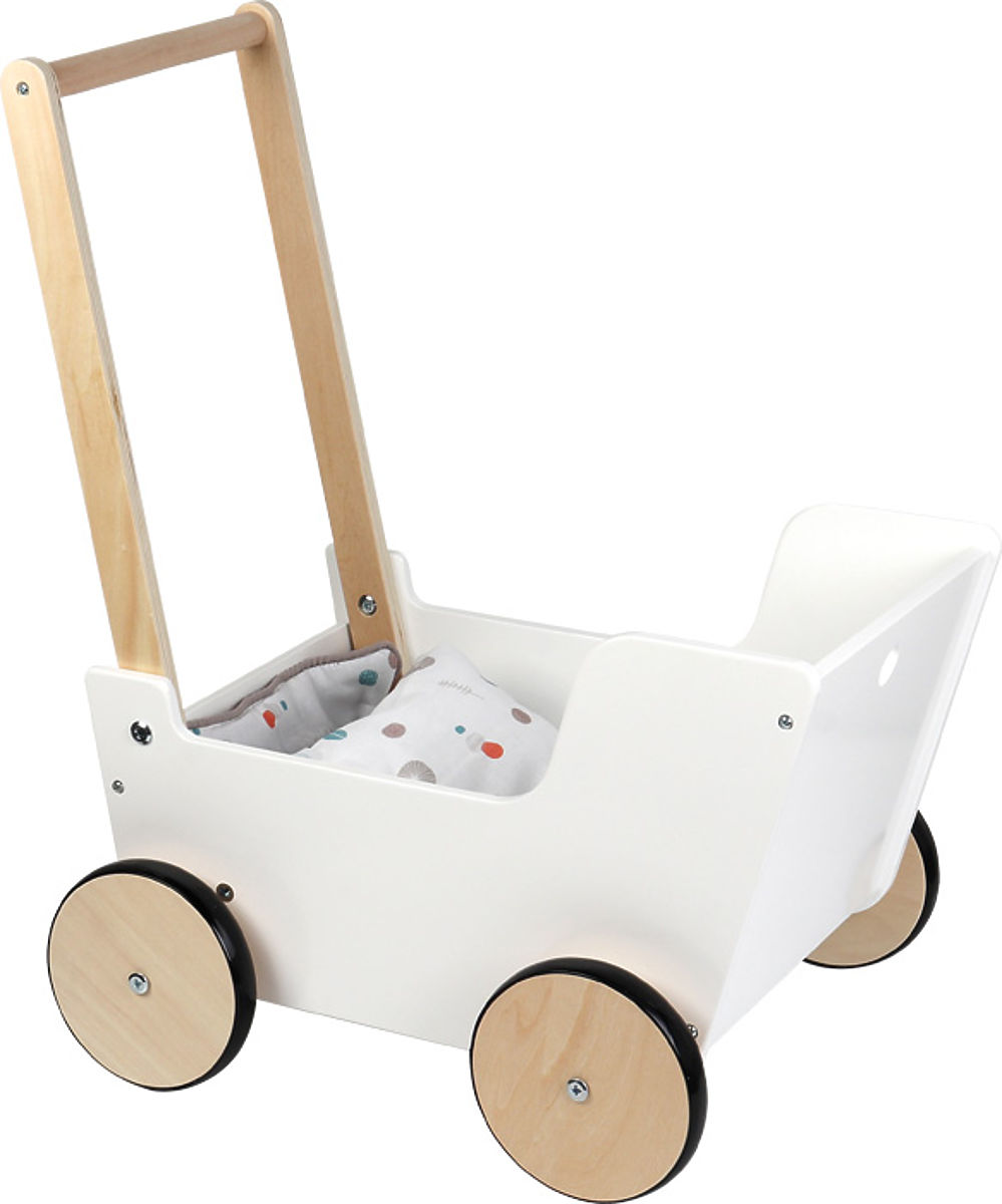 Dieser moderne Puppenwagen ist der ideale Begleiter für kleine Mädchen, die gerne ihre Puppen umsorgen. Er vereint Komfort und Verspieltheit in einem wunderschönen Design, was ihn zu einem attraktiven Spielzeug macht, das jede kleine Mama begeistern wird. Dank der neutralen Farben passt er in jedes Kinderzimmer. Er bietet die Möglichkeit zum spielerischen Erkunden, fördert aber auch motorische Fähigkeiten und unterstützt soziale Interaktionen. Das Spielzeug besteht aus sicheren und hochwertigen Materialien, die gesundheitlich unbedenklich für Kinder sind und die höchsten Sicherheitsstandards erfüllen. Gummierte Räder sorgen für einen sicheren und leisen Betrieb. Die beidseitige Bettwäsche in sanften Farben mit einer großen Decke stellt sicher, dass Puppen oder Kuscheltiere bis zu einer Größe von 46 cm warm und gemütlich liegen. Dank des Griffs mit 2 verschiedenen Einstellungen kann die Höhe an die Größe und Fähigkeiten des Kindes angepasst werden. Dies ermöglicht es, dass der Puppenwagen nicht nur ein großartiger Begleiter als Gehhilfe oder bei den ersten Schritten ist, sondern auch langanhaltenden Spaß bietet. Hauptmerkmale: gummierte Räder für leises und sicheres Fahrenunterstützt die Entwicklung sozialer Fähigkeiten und Spracheregt zu fantasievollem Spiel anfördert Kreativität