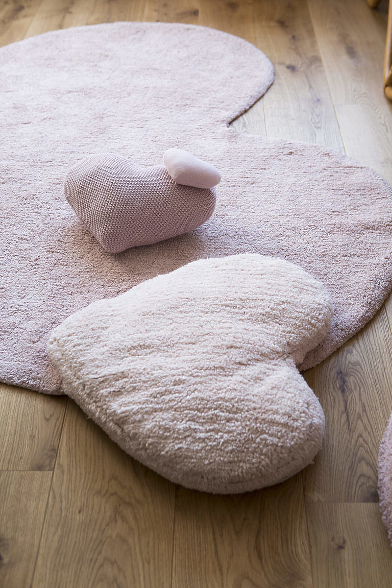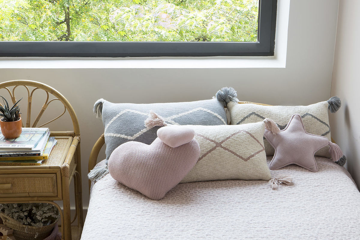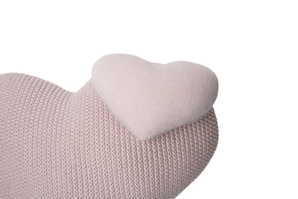 Ein handgestricktes herzförmiges Kissen ist ein großartiger Partner für einen angenehmen Schlaf. Dank der sanften Pastellfarben und des minimalistischen Designs dient es auch als Dekoration für den Raum.