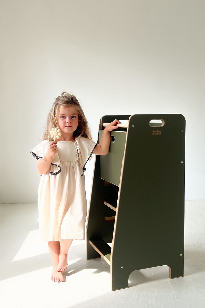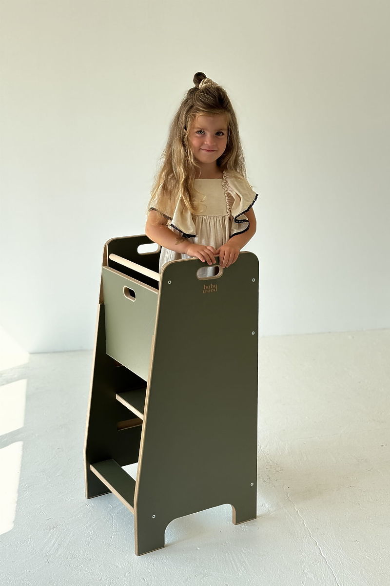 Lernturm Comfort ist ein durchdachter Küchenhelfer, der Kindern sicheres Stehen in der richtigen Höhe ermöglicht und sie aktiv in die täglichen Küchenaktivitäten einbezieht. Stabile Ausführung und geschlossene Konstruktion geben den Eltern die Gewissheit, dass das Kind beim Kochen sicher ist und fördern gleichzeitig seine Selbstständigkeit. Dank dieses Helfers wird die Küche zu einem Ort des gemeinsamen Entdeckens, Lernens und Spaßes. Kinder können bei einfachen Aufgaben helfen und schrittweise neue Fähigkeiten auf natürliche und spielerische Weise erlernen.
