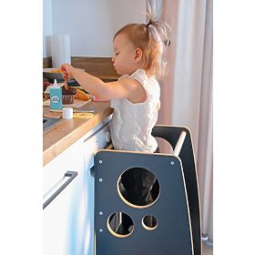 Der Montessori-Lernturm für Kinder im originellen schwarzen Design wird den richtigen Akzent in der Inneneinrichtung setzen. Ein praktischer Helfer in Form unseres Lernturms fördert die Kreativität, motorischen Fähigkeiten und wirkt sich zudem positiv auf die Gesamtentwicklung und Sozialisation des Kindes aus.