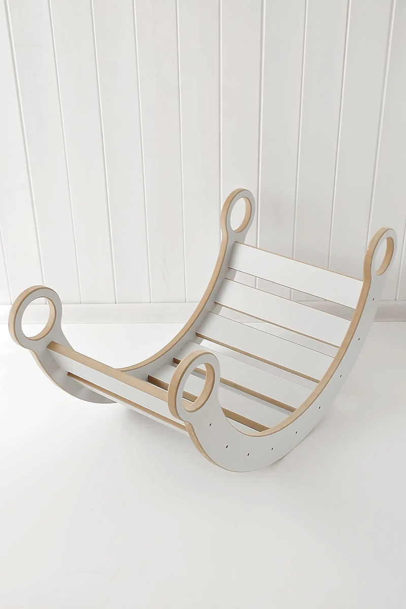 Multifunktionale weiße Holzschaukel für Kinderzimmer. .. mehr