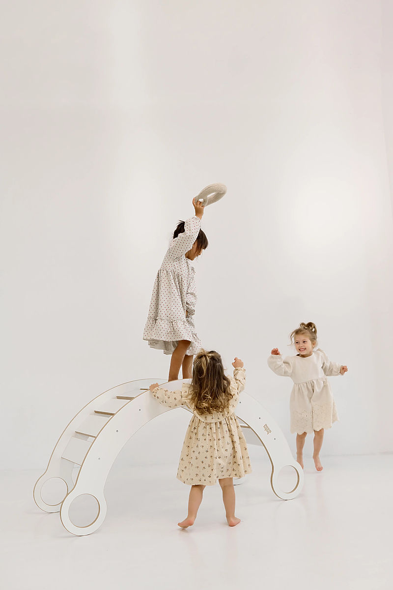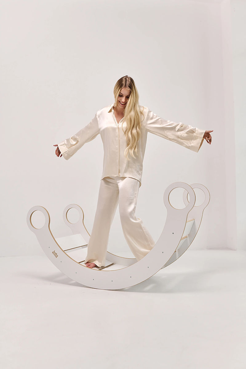 Die stilvolle Montessori Holzschaukel XL in Weiß passt perfekt in Kinderzimmer oder Spielzimmer. Dieses multifunktionale Set ermöglicht sicheres Schaukeln sowie kreative Spiele – es kann als geheimes Versteck, kleiner Tisch oder Baufläche dienen. Es unterstützt auf natürliche Weise die Entwicklung von Kraft, Gleichgewicht und motorischen Fähigkeiten der Kinder. Die Montessori Schaukel XL ist stabil und langlebig dank hochwertigem Holz. Ihr elegantes und zeitloses Design fügt sich leicht in jedes Interieur ein und bietet Kindern stundenlangen Spaß bei der Entwicklung ihrer physischen und psychomotorischen Fähigkeiten.