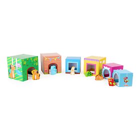 Würfel bestehen aus Pappe, Tiere aus Holz. Versuchen Sie, Würfel unterschiedlicher Größe in der richtigen Reihenfolge vom größten zum kleinsten zu stapeln und einen Turm zu bilden. Alle Faltklötze verfügen über eine Öffnung, in der sechs verschiedene Holztiere ihr Zuhause finden. Jedes Haustier muss seinen richtigen Schlafplatz haben. Hauptmerkmale: Entwickelt die Hand-Auge-Koordination. Schöne Illustration. Entwickelt Feinmotorik und Geschicklichkeit. Entspricht der europäischen Sicherheitsnorm