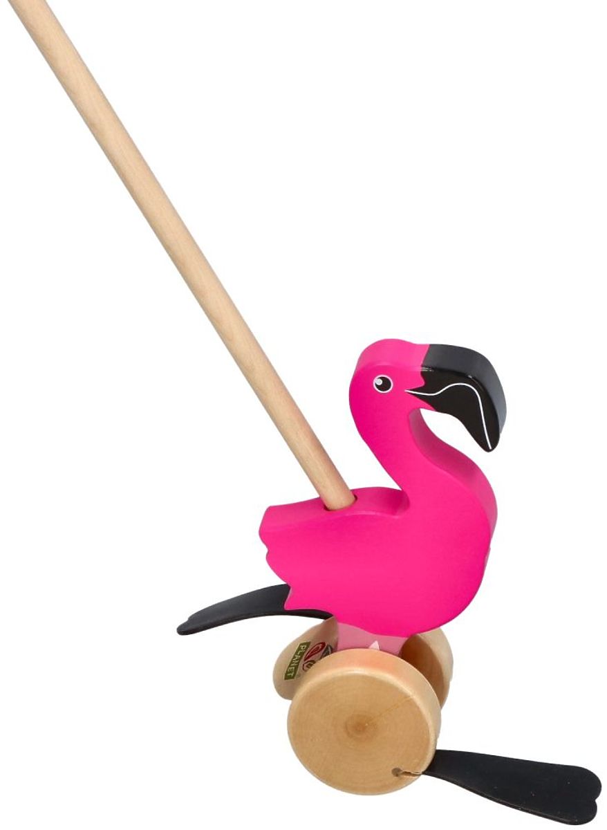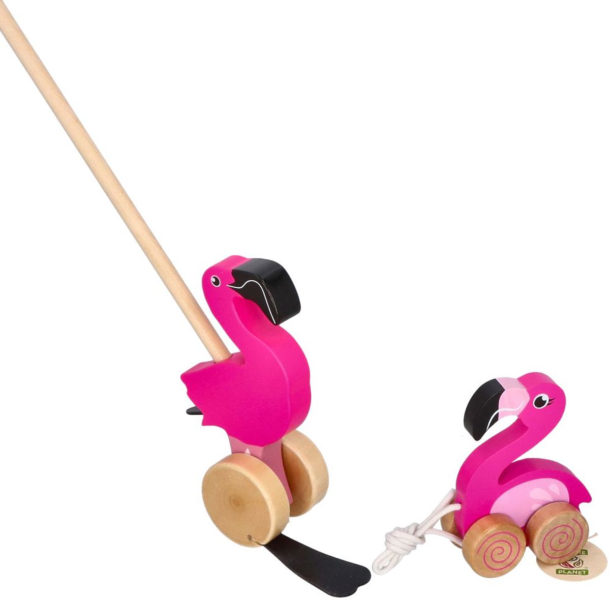 Wir präsentieren den idealen Begleiter für gemeinsame Spaziergänge. Der bezaubernde rosa Flamingo aus Holz ist ein Spielzeug, das das Kind zum Bewegen und Gehen ermutigt. Das Kind greift die Stange und schiebt den Vogel vor sich her. Die Räder verursachen beim Drehen ein Klatschen der Gummielemente auf dem Boden. Die Stange endet mit einem Griff, um das Schieben des Spielzeugs bequem zu machen. Die Stange ist angeschraubt.