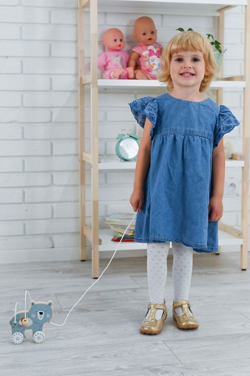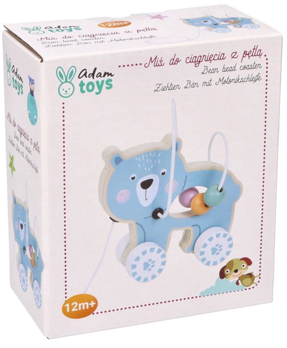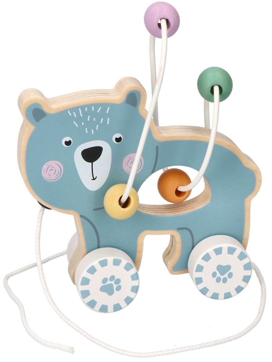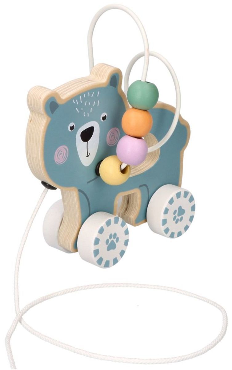 Der Teddy am Seil wird sicherlich ein beliebter Begleiter bei den ersten Spaziergängen. Jetzt wird das Laufenlernen noch angenehmer und interessanter. Dieses einfache Spielzeug ermutigt das Kind zum gemeinsamen Spielen und Lernen. Kinder ziehen gerne etwas hinter sich her, und je mehr passiert, desto öfter und lieber versucht unser Sprössling, alleine zu gehen. Auch wenn das Kind müde wird, kann es eine kleine Pause einlegen und mit den bunten Perlen auf der Schleife spielen, mit der der Teddy ausgestattet ist. Das Spiel mit dem Durchfädeln der Perlen fördert die Motorik der kleinen Hände und lehrt die Koordination.