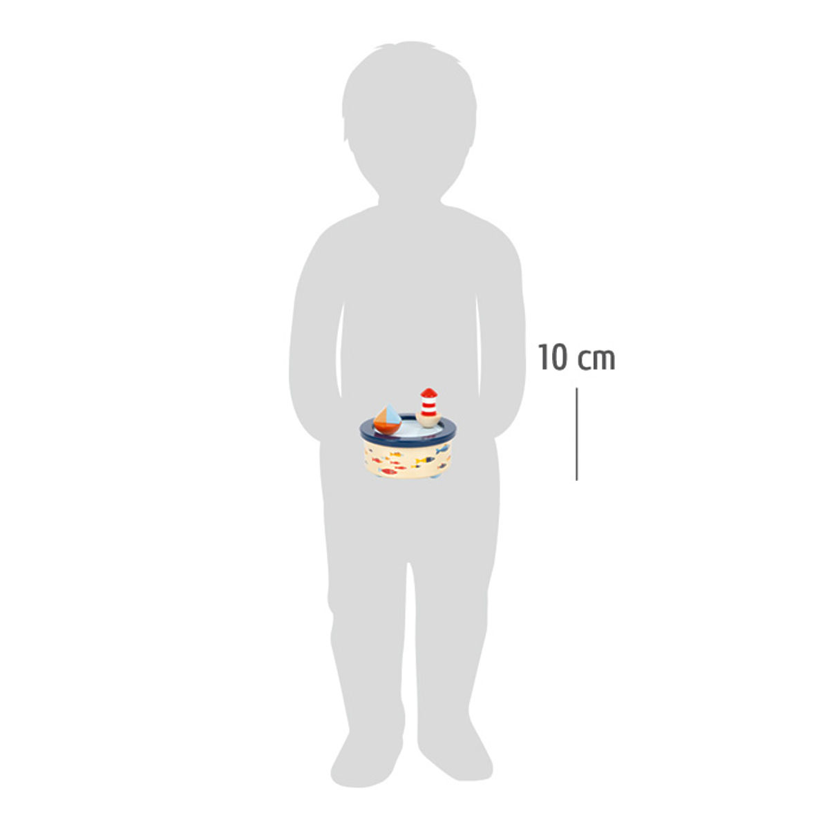 Spieluhr mit maritimem Design und abnehmbaren Holzfiguren. .. mehr