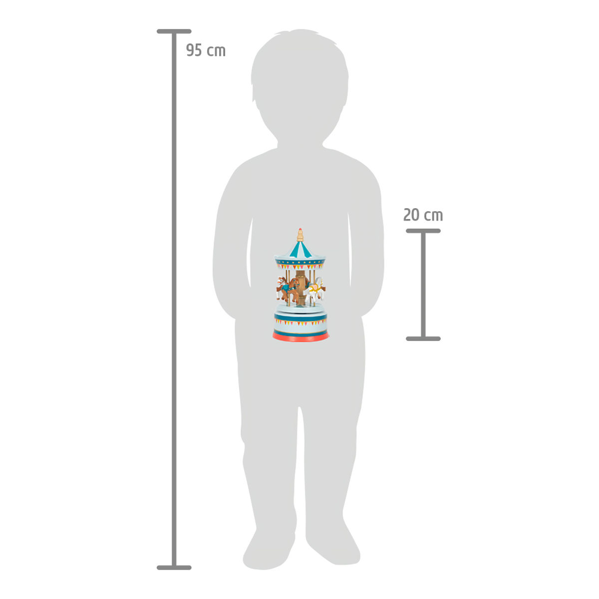 Zirkus oder Jahrmarkt? Mit dieser Spieluhr können Sie beides haben! Das klassische Karussell mit hölzernen Pferdchen dreht sich im Takt der Melodie „Für Elise“. Kinder können die Spieluhr selbstständig bedienen, sie hat abgerundete Kanten, die perfekt für sicheres und einfaches Greifen sind. Das Spielzeug hat viele goldene und bunte Details, ist sichtbar aus Holz gefertigt und hebt sich durch die Kombination aus klassischem Design und modernen Elementen in jedem Kinderzimmer hervor. Hauptmerkmale: Spieluhr im klassischen Design, Melodie „Für Elise“, Karussell dreht sich im Takt der Musik, goldene und bunte Details, abgerundete Kanten, hochwertige Illustrationen, modernes und geschlechtsneutrales Farbschema